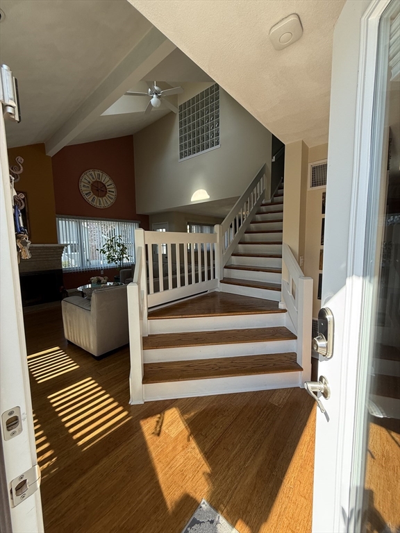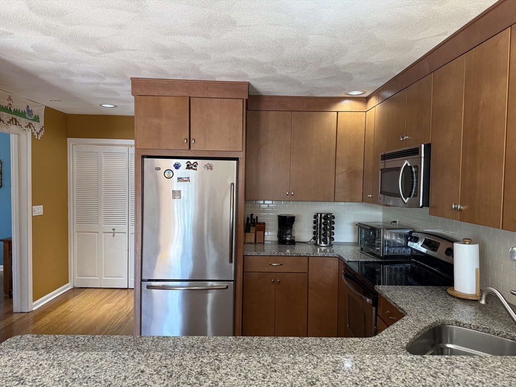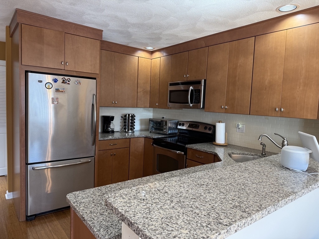 Gorgeous and spacious, this Greenwood Acres townhome offers the perfect combination of comfort and convenience in a highly desirable Reading location. With easy access to major highways and downtown Reading's shops and restaurants, the setting is ideal for both commuting and enjoying all the town has to offer. This home features 3 bedrooms, 2.5 bathrooms, and approximately 2,300 square feet of living space. The updated kitchen flows into a fireplaced living room, perfect for cozy evenings, and a large dining area perfect holiday hosting. The finished basement provides flexible additional space. Upstairs, you'll find two generously sized bedrooms with ample storage, plus a sun-drenched loft that serves as the third bedroom. Enjoy the serene setting from your private deck, and take advantage of the convenience of in-unit laundry and a two-car tandem garage. Pet-friendly for small dogs or cats, this townhome is available now and ready for you to move in! Smart home ready!