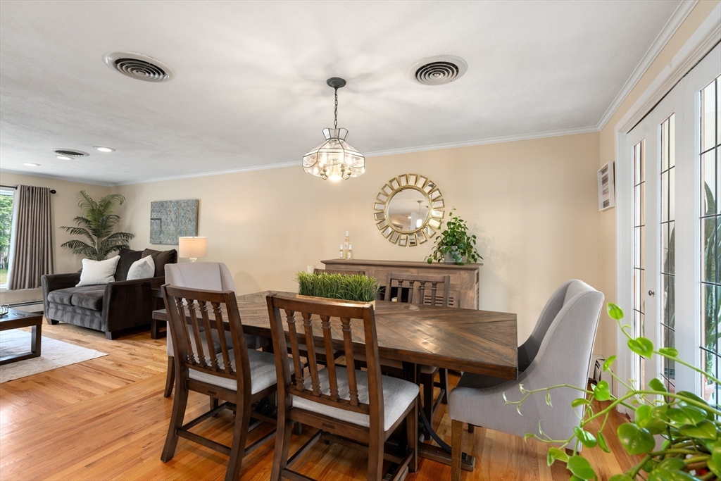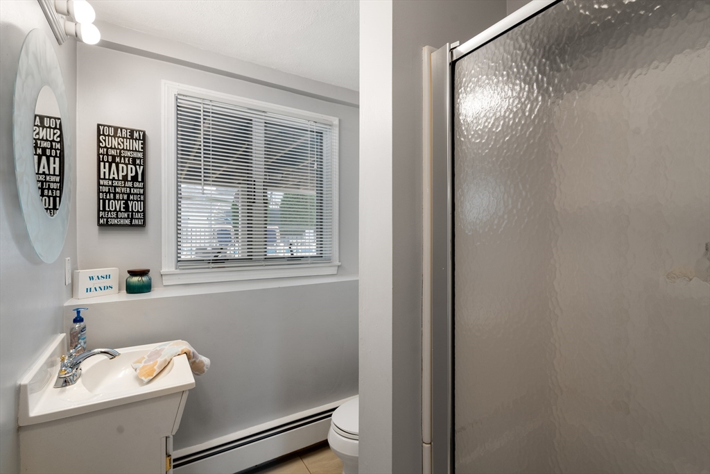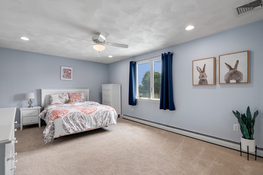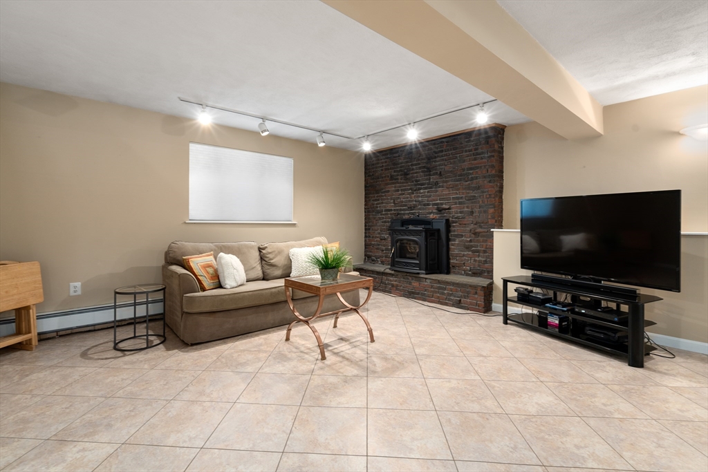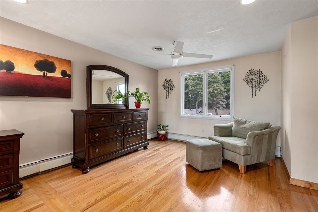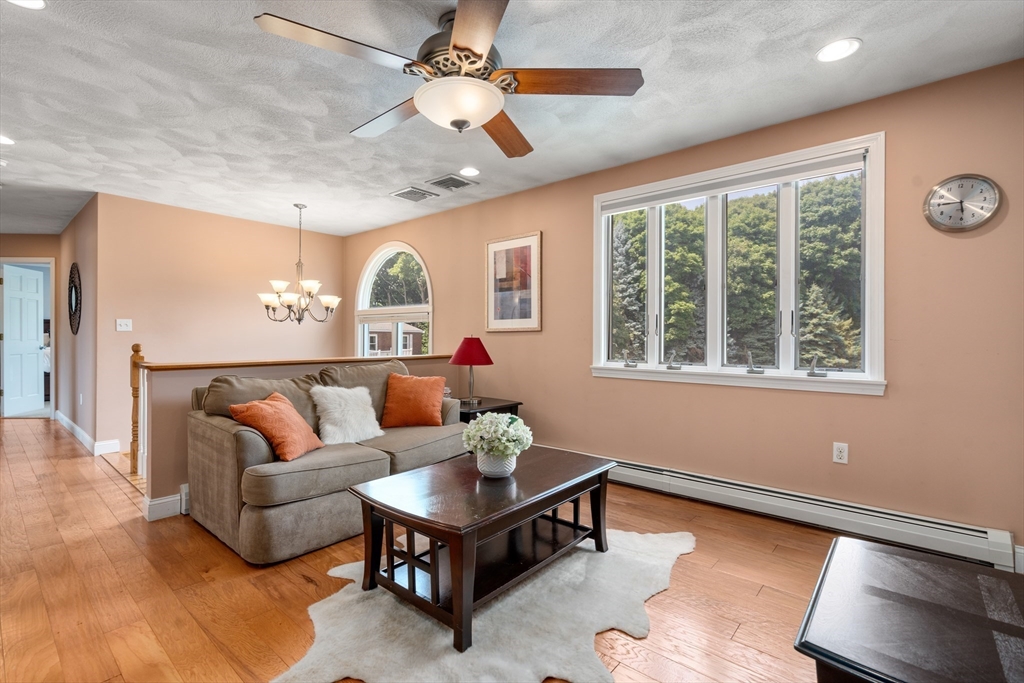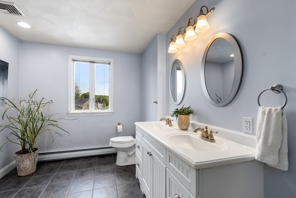 Commanding 4-bedroom Colonial-style home on over a quarter-acre in a charming cul-de-sac. The dramatic entryway opens to a living room, dining room, and kitchen, perfect for seamless living and entertaining. The kitchen boasts an expansive granite island and countertops. The main level includes an oversized primary bedroom, office, and bath with an updated shower and double vanity. The Florida room, with three glass walls and skylights, offers a year-round alfresco experience. The finished lower level features a large recreation room with a tiled hearth and pellet stove, full bath, laundry room, office, and garage access. Upstairs are three additional large bedrooms, a full bath with double vanity, and a family room. The full-height attic provides potential to finish for a fourth living level. Outdoors, enjoy a resort-like experience with an inground pool, expansive patio, and second-floor deck. Conveniently located near premier shopping, Route 1, and Logan Airport.