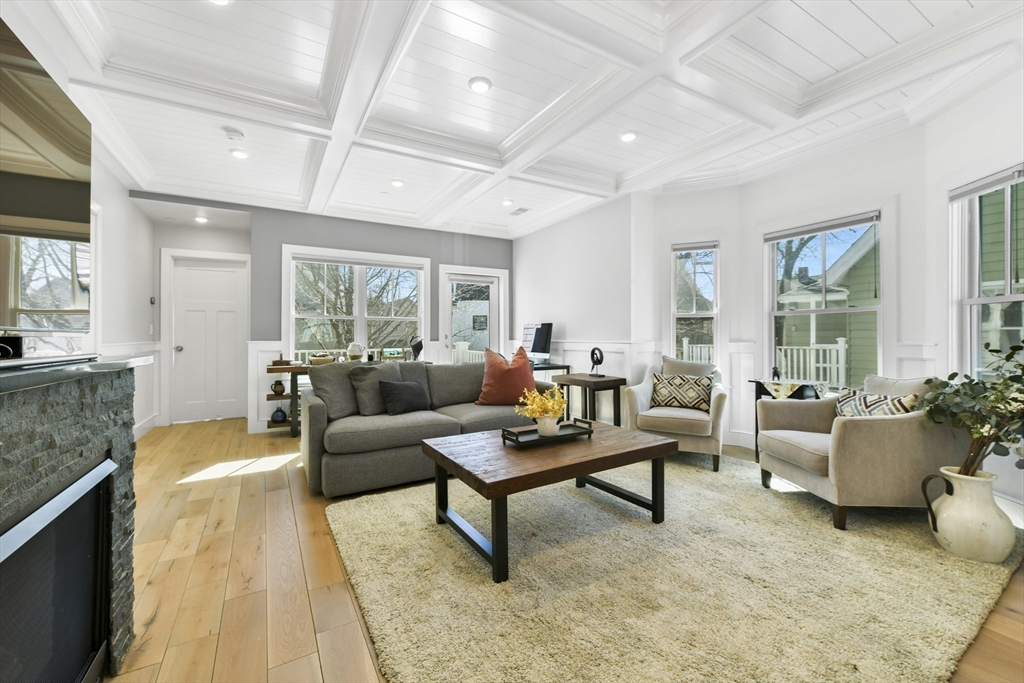 Nestled in the heart of Davis Square, this tasteful upper level condominium offers an ideal retreat for those seeking the vibrancy of city living.Situated on a tranquil street just moments away from the Red Line, local shops, dining spots, and entertainment venues, this property boasts 3 bedrooms and 3 full bathrooms.The 2nd floor features the primary bedroom with its ensuite bath, a second bedroom and bathroom, while the kitchen and main living area showcase a private deck, exquisite bay windows, refined millwork, coffered ceilings, wainscoting, custom cabinetry, and a cozy gas fireplace. Upstairs provides another private deck within a third bedroom, full bathroom, office space, in-unit laundry, and ample storage. Step outside to enjoy the privacy of outdoor space and professionally landscaped gardens, along with the convenience of 4off-street parking. Don't let this extraordinary opportunity pass you by to own a sophisticated and conveniently located home in the heart of Davis Square