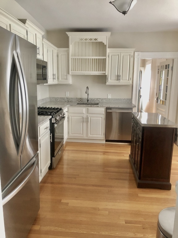 This is the one! Welcome to 13 Eden St. U1 in historic Charlestown. Across from Eden Street Park, this 1400 sqft home is ready for immediate occupancy. Upon entering the foyer, 2 bedrooms, 2 bathrooms, a cozy living room and large eat in kitchen awaits you.This floor plan delivers privacy with the first bedroom, with french doors and a stunning wood fireplace surround at the front of the home overlooking the park. The second bedroom with ensuite 3/4 bath is at the rear of the home. The large kitchen with utility island, wine fridge and quaint bay window perfect for dining has brand new SS appliances. Making your way to the living room, you will pass another bathroom with tub. The sizable living room has a decorative fireplace and large window. As if all of this isn't enough, a bonus room with storage could be a fantastic home office or cool workout space. Wood flooring, fresh paint, laundry, central air and a deck leading to a gardeners delight backyard complete this very special home!