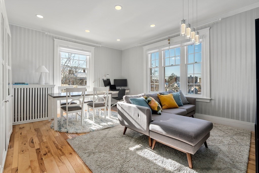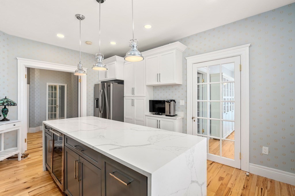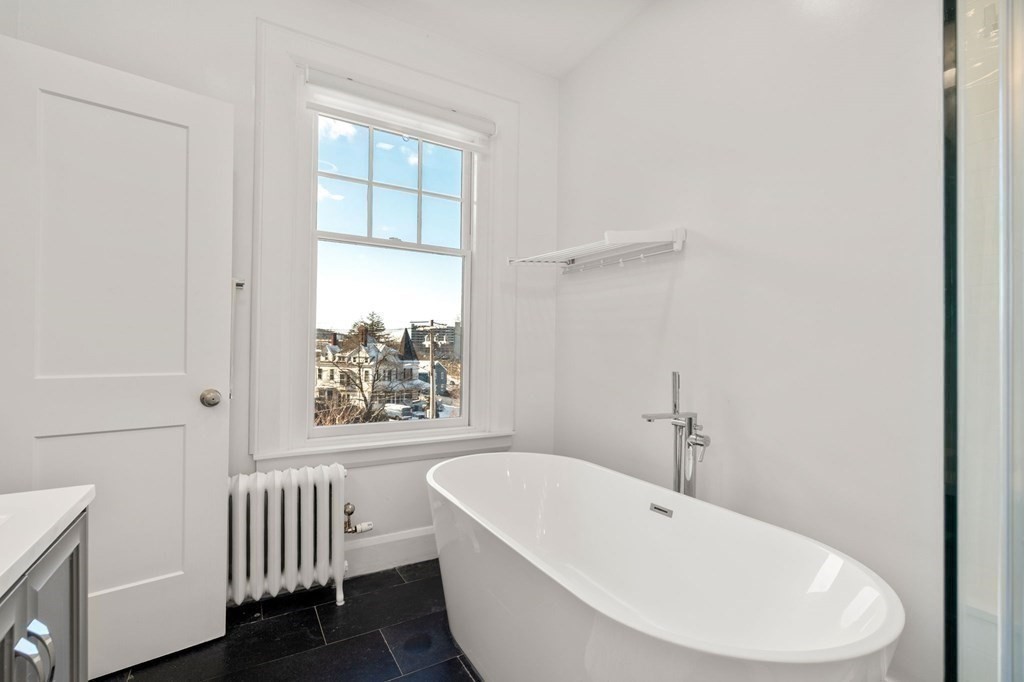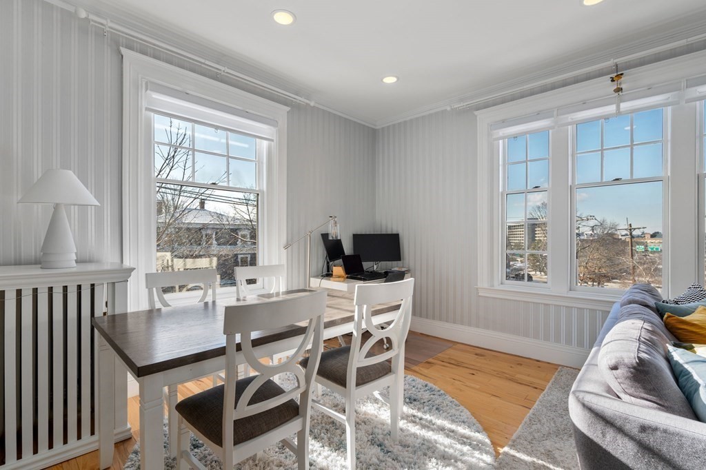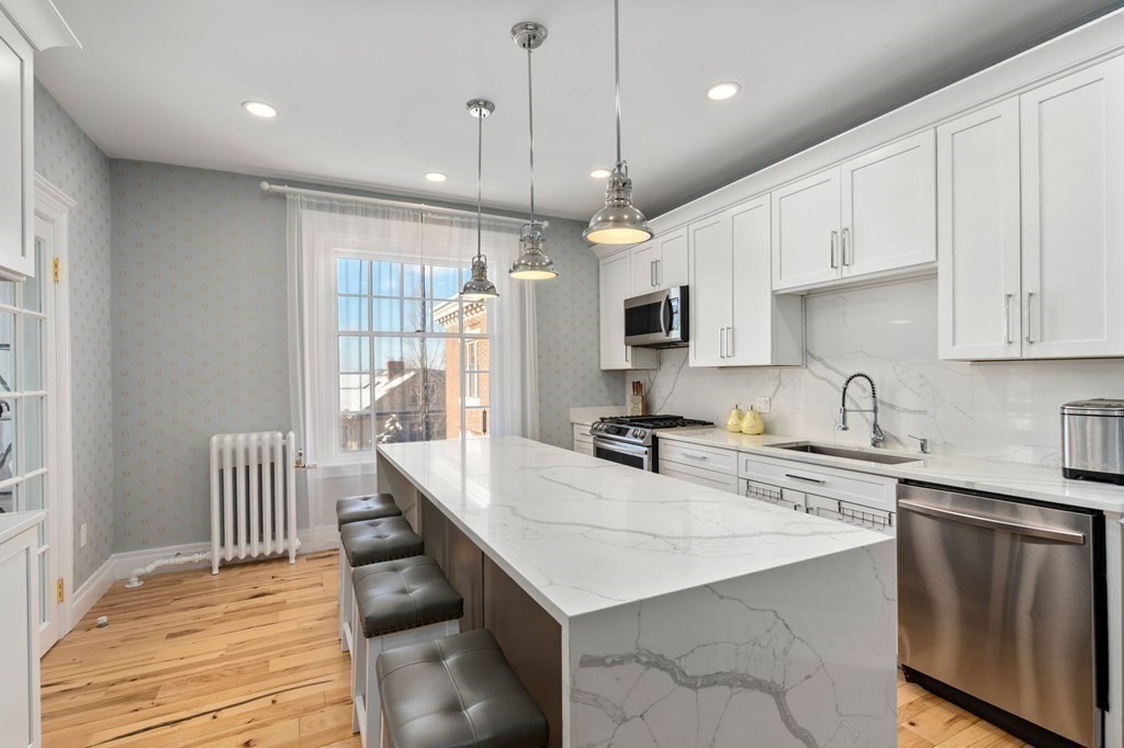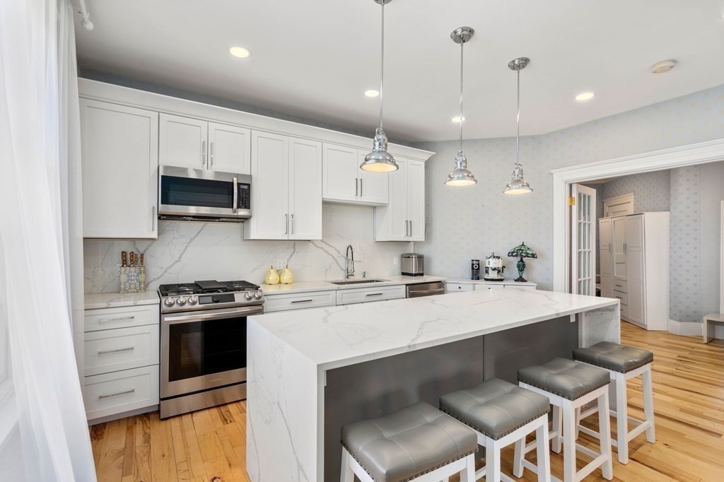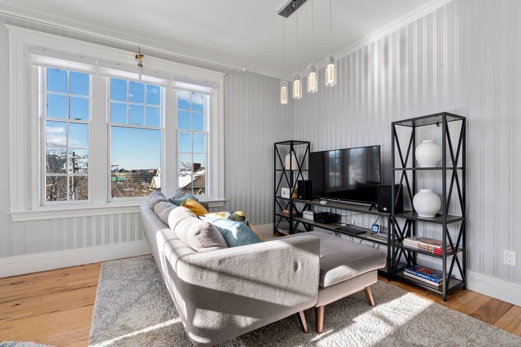Welcome to modern luxury in the heart of Newton Corner! This newly renovated 3rd-floor penthouse in the prestigious Hunnewell building offers stunning views and an abundance of natural light. Step inside to discover brand new hardwood floors, a spacious foyer, and a combined living and dining area. The spectacular new kitchen features a supersized island with a wine cooler, Samsung appliances, quartz countertops, and ample storage. The master bedroom boasts an en-suite bath with a soaking tub, shower, and double vanity. With 2 full baths, in-unit laundry, and storage in the basement, convenience is at your fingertips. Commuters will appreciate the easy access to public transportation and the Mass Pike. Explore the dining and shopping options in Newton Corner and Newtonville, all just moments away. This property blends urban living and modern comfort seamlessly. Don't miss out on this vibrant and convenient home! Pet friendly, one exclusive parking spot