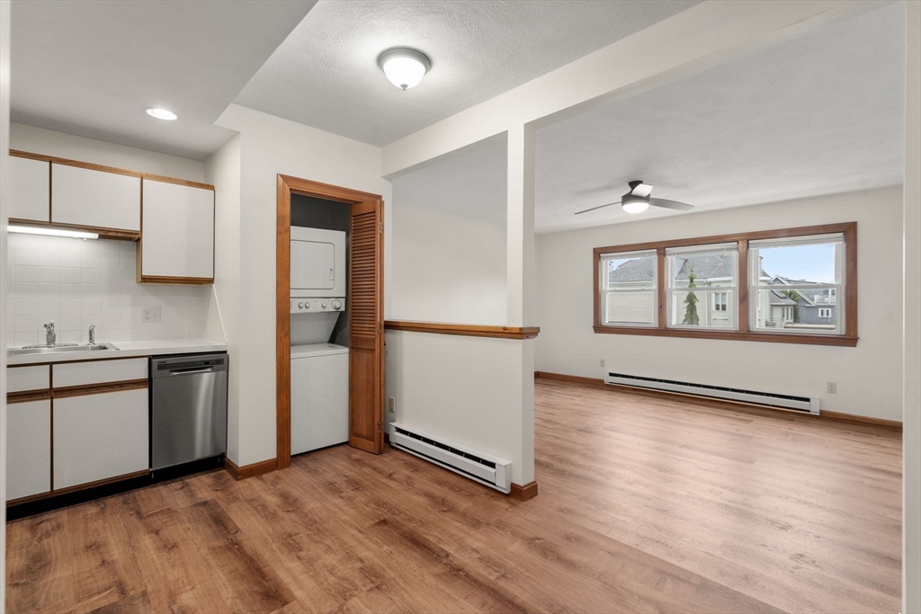 Discover the perfect blend of comfort and convenience in this stylish one-bedroom, one-bath condo, ideally located near the vibrant Davis Square in Somerville. Featuring an updated kitchen complete with stainless steel appliances, a bright and sunny spacious living room, a generous bedroom, and ceramic tiled bath. Recently installed LVP flooring, recessed lights, ceiling fans with lights, and in unit washer & dryer. One assigned parking spot, lower-level bike and private storage. Automatic sprinklers throughout the building and outdoor sprinklers enhancing your curb appeal. Minutes to Davis Sq, Porter Sq, Green Line extension stop, RT93/ Assembly Row, local shops, Town Hall and Downtown Boston. Easy access to Somerville's trendy bars, restaurants, cafes, and community/bike paths. You'll love the vibrant community.