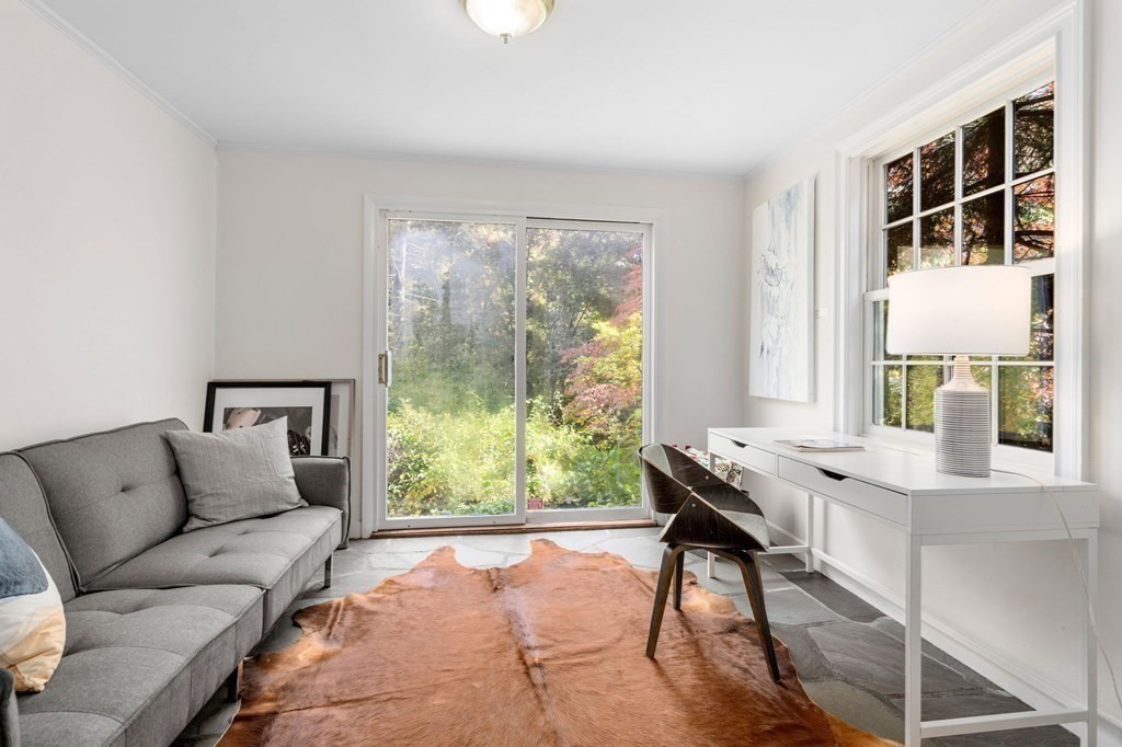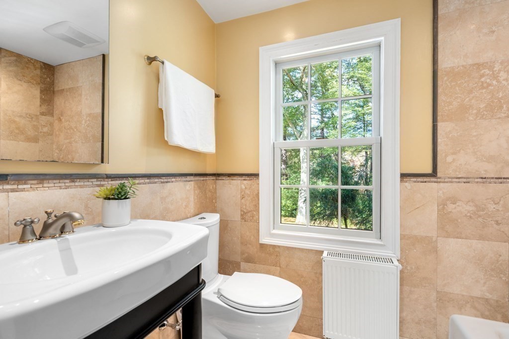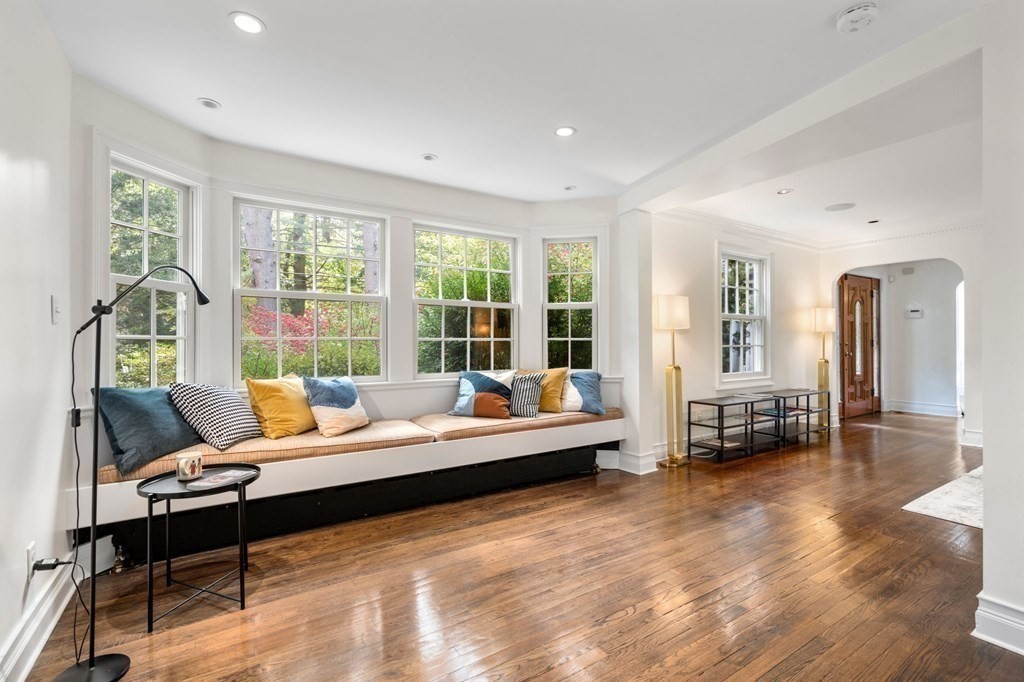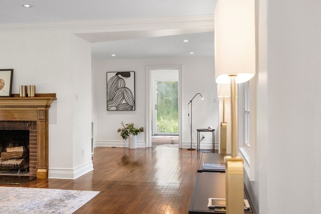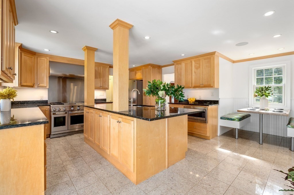 Fall in love with your own personal oasis, nestled on 2.2 acres of breathtaking, tree-filled & professionally landscaped property with private POND views, as the vibrant colors of fall paint the landscape, this home offers an unparalleled living experience. Upon entering, on the left, you will be greeted with a beautiful spacious living room with a large picturesque window, fireplace and a lot of space for enjoyment. Further, you will find yourself reading books on a gorgeous reading nook. The four-season porch can be easily transformed into an office space where you can find tranquility and focus. A guest or in-law bedroom with its own in-law bathroom is located on the main level. The gorgeous dining room has enough space to host a large Thanksgiving party! Beautiful kitchen with a custom-made kitchen table & benches will always give you an experience as if you are dining out.Second floor has 4 bedrooms including the primary bedroom that will leave you in awe with its size and space!