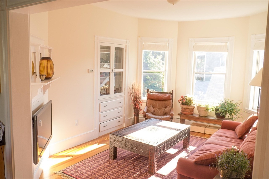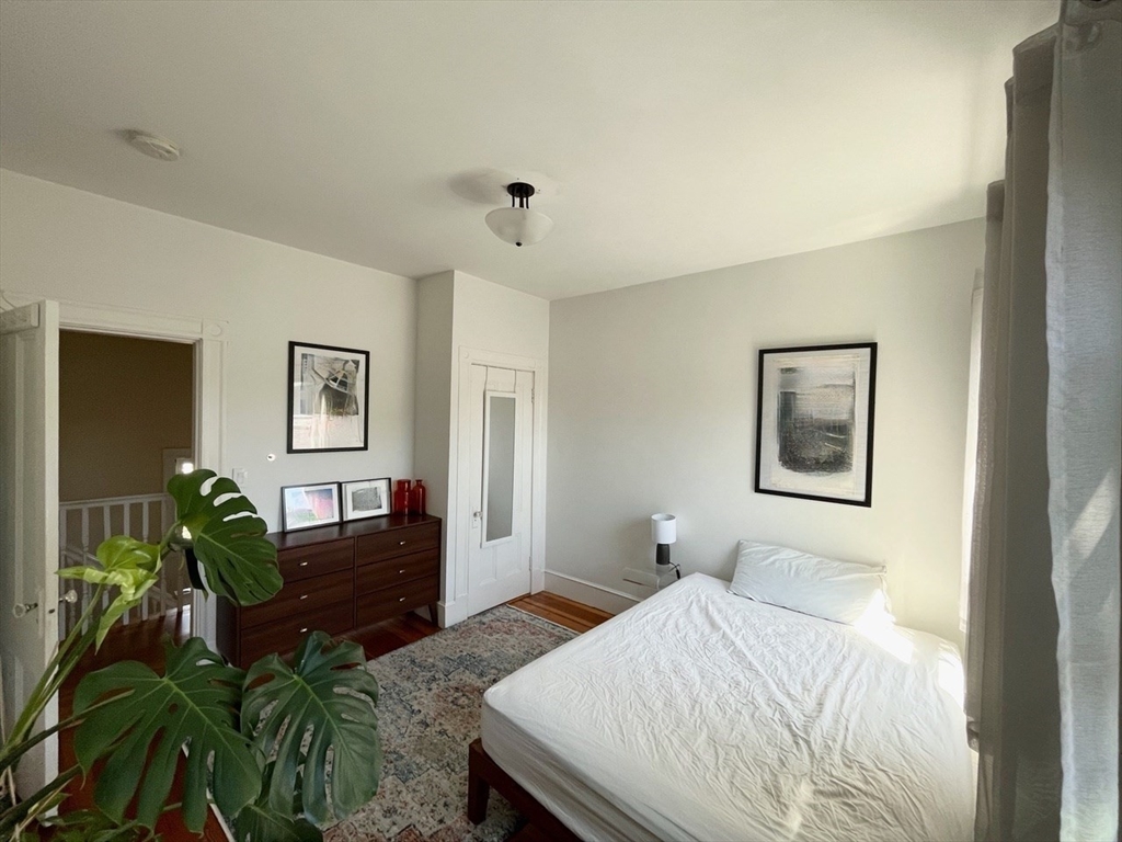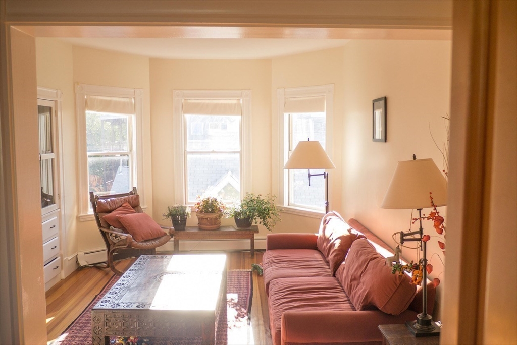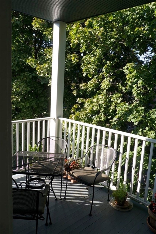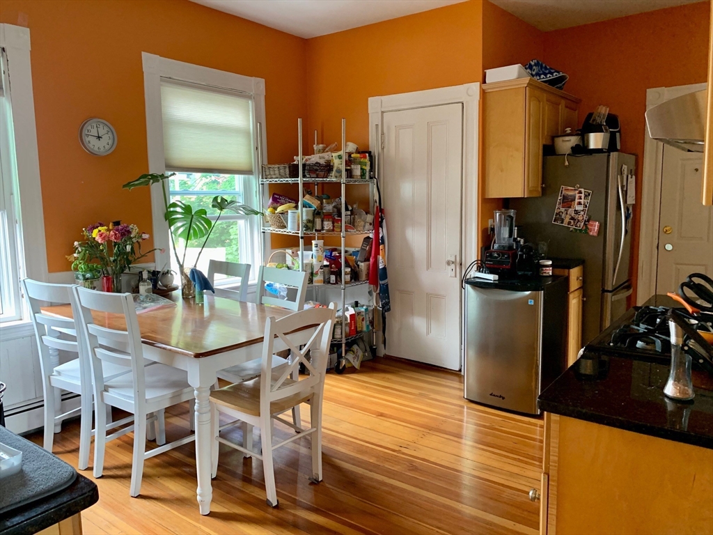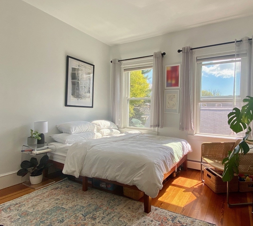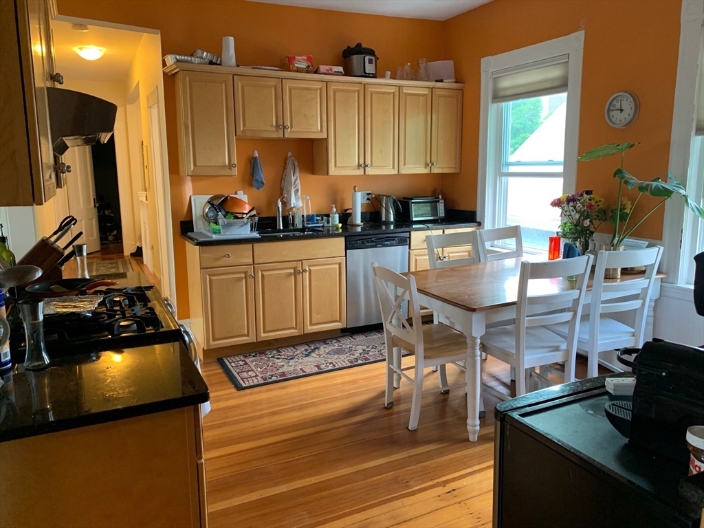This sun-drenched and stunning 4 bedroom apartment is located on a quiet tree-lined street in the heart of Central Square!On the top floor of a triple-decker that is taller than its neighbors, you will enjoy direct sunlight from sunrise to sunset, as well as the benefit of no one living above. An open plan eat-in kitchen (with granite counter tops, stainless steel appliances, and walk-in pantry) connects to a living room with a large bay window. The other 5 rooms can be used in multiple configurations: for example, 3 bedrooms (with 2 large studies); or 2 bedrooms (with 2 large studies and a dining room); etc. Other desirable features include: off-street parking, in-unit washer & dryer, a covered porch, high ceilings, and original wood floors throughout (which will be refinished prior to the start date). Heating costs are reduced by a new high-efficiency gas boiler, which connects to a 60-gallon hot water tank that ensures plenty of hot water for all.