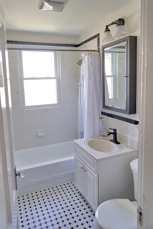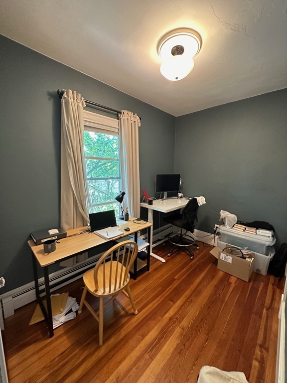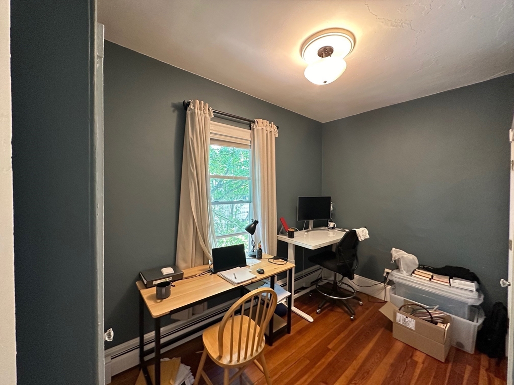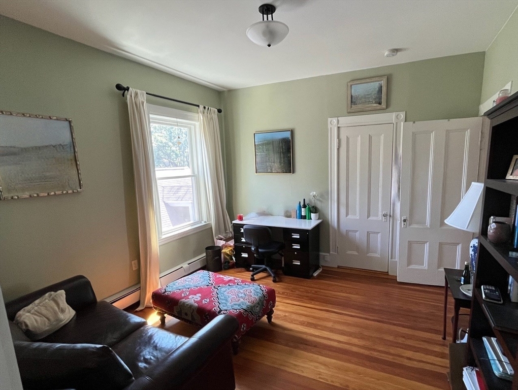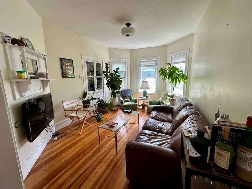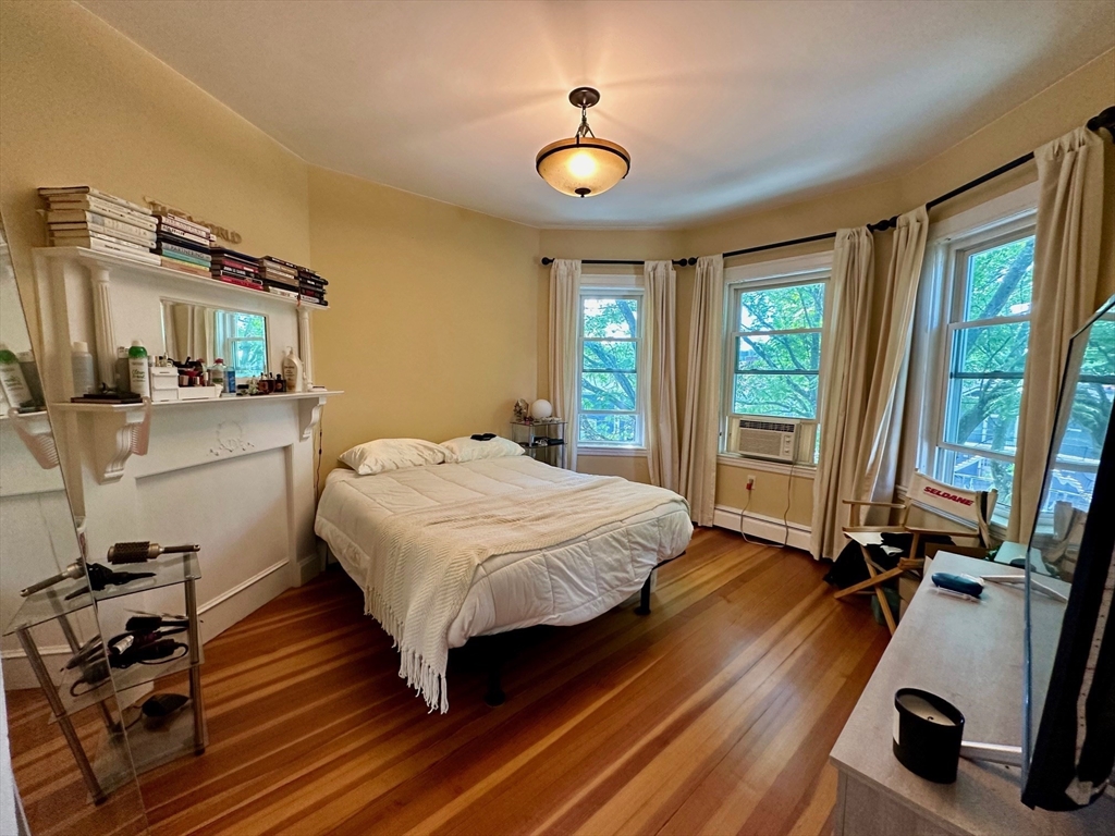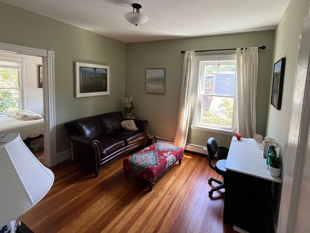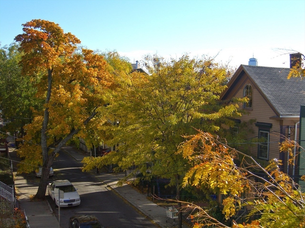This sun-drenched and stunning 4 bedroom apartment is located on a quiet tree-lined street in the heart of Central Square!On the top floor of a triple-decker that is taller than its neighbors, you will enjoy direct sunlight from sunrise to sunset, as well as the benefit of no one living above. An open plan eat-in kitchen (with granite counter tops, stainless steel appliances, and walk-in pantry) connects to a living room with a large bay window. The other 5 rooms can be used in multiple configurations: for example, 3 bedrooms (with 2 large studies); or 2 bedrooms (with 2 large studies and a dining room); etc. Other desirable features include: off-street parking, in-unit washer & dryer, a covered porch, high ceilings, and original wood floors throughout (which will be refinished prior to the start date). Heating costs are reduced by a new high-efficiency gas boiler, which connects to a 60-gallon hot water tank that ensures plenty of hot water for all.