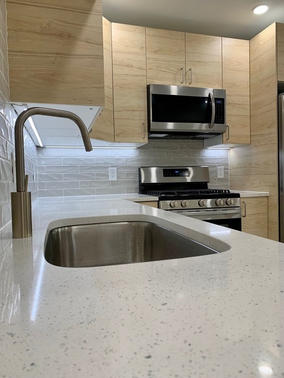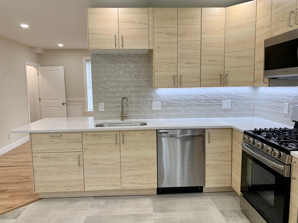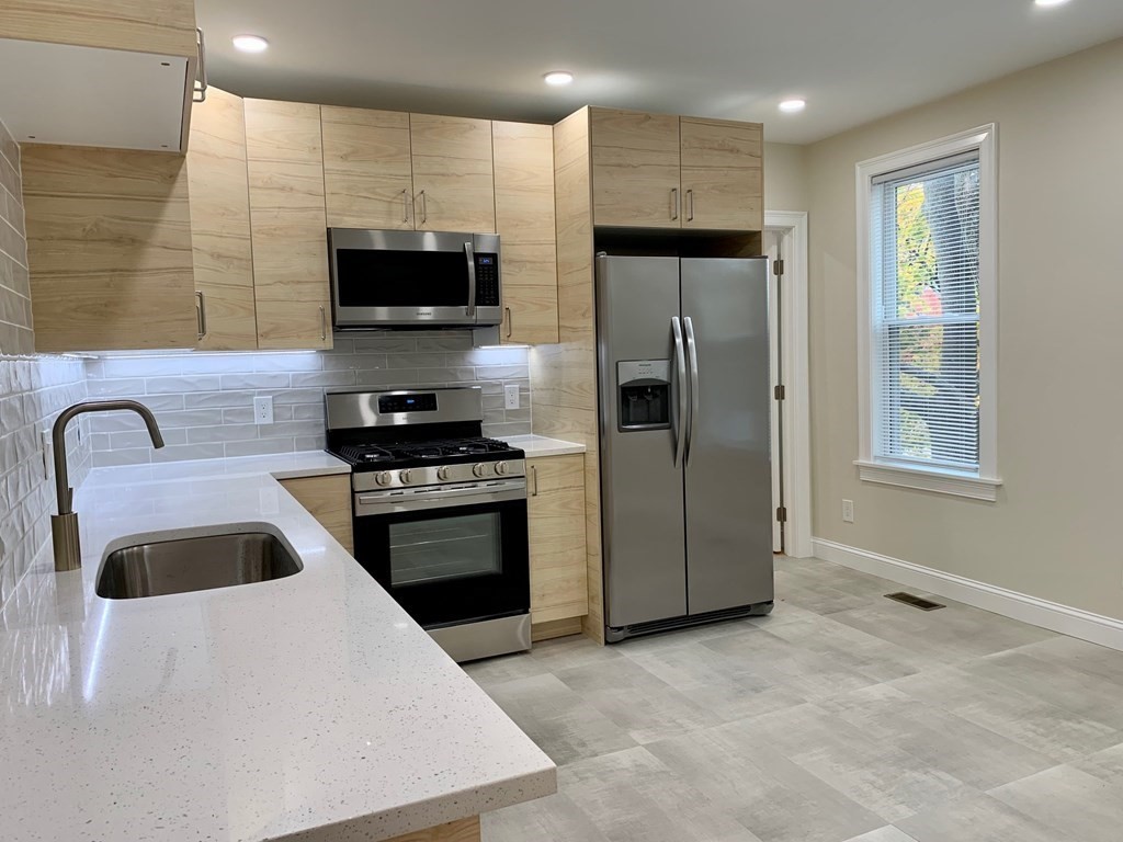 No brokers fee! Stunning 3 BD/2 BA apartment in the heart of Stoneham, conveniently locating near I-93 and I-95! This beautiful apartment was recently gut renovated to the studs! All finishes are very high quality, with rare attention to a smallest details. It consists of two full bedrooms, one master bedroom, large living room, modern kitchen and two full bathrooms. Kitchen features wooden cabinets that perfectly matching stainless steel appliances as well as cream marble countertops. Recessed lighting provides additional comfort to the already well lit apartment. Additional storage is also available. This unit is provided with washer and dryer. Pets will be considered on case-to-case basis. Two tandem parking spots are included in the rent as well! This beautiful apartment located near Stoneham downtown and everything it has to offer, including restaurants, bars and shops, as well as near exits to I-93 and I-95 for those who travel to work to Boston and elsewhere.