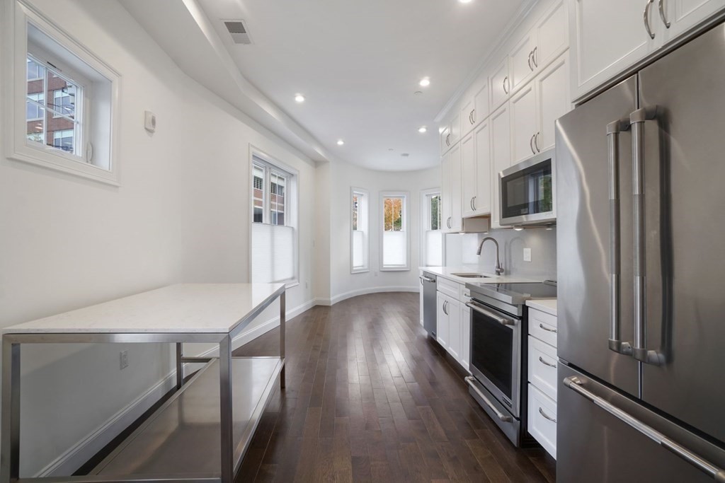 Stunning townhouse comprised of 3 bedrooms and 2.5 bathrooms. The private master suite offers a walk in closet, en-suite bath with double vanity, and glass enclosed shower. Outside the bedroom offers a spacious landing with direct access to sprawling deck. Features include Jenn Air kitchen appliances, abundant white cabinetry, induction cooking, quartz counters, marble baths, in-unit washer & dryer, oak wood floors, customized closets,NEST thermostats / video doorbell, & high efficiency HVAC. Two complementary guest bedrooms (queen size and nursery / study size). A truly innovative design & contemporary exterior. Steps from the award winning Kendall Square community of world-class offices, laboratories, restaurants, and retail shopping linked together by 2.5 acres of lush, landscaped open space. Minutes from the Red Line, Longfellow Bridge, & MGH. One garage parking space available. Upfront costs negotiable.