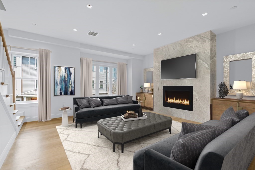 THE LAST TOWNHOME - $5,000 Buyer Credit! 21 Crowninshield: a collection of 8 new construction townhomes in Brookline. Luxurious finishes throughout this 4 bed / 3.5 bath home w/ 2 parking spaces & beautiful backyard. Large living room w/ white oak floors, gas fireplace w/ quartzite surround. Chef's kitchen w/ caesarstone counters, 5 burner Bertazonni range, 48" Thermador refrigerator & Bosch dishwasher. Adjacent dining area perfect for family meals or entertaining. Large primary suite w/ plenty of closets & en-suite bath w/ glass shower & high-end fixtures. Generous guest bedroom w/ adjacent full bath. Top floor is ideal 2nd primary bedroom or guest suite w/ full bath. Bonus room is a perfect home office or guest bedroom. Private backyard w/ patio. 2 parking spaces: 1 garage & 1 deeded driveway. All exterior maintenance (landscaping & snow removal) covered by HOA. Quality construction from family-owned company that's been building since 1936. Walk to schools, parks, restaurants & BU