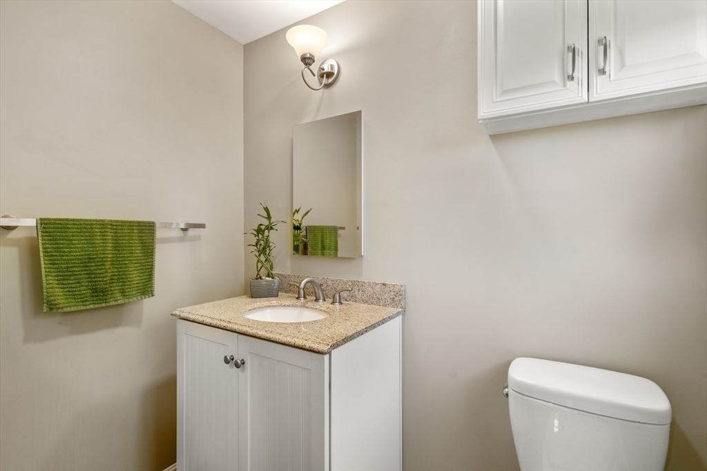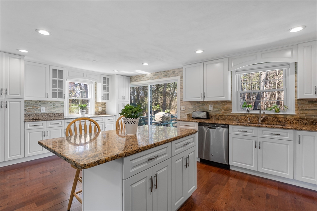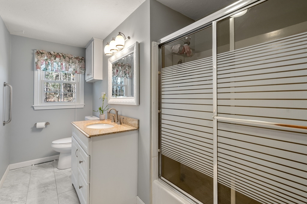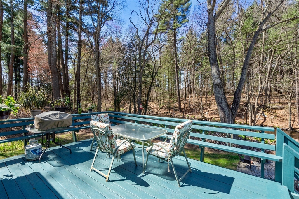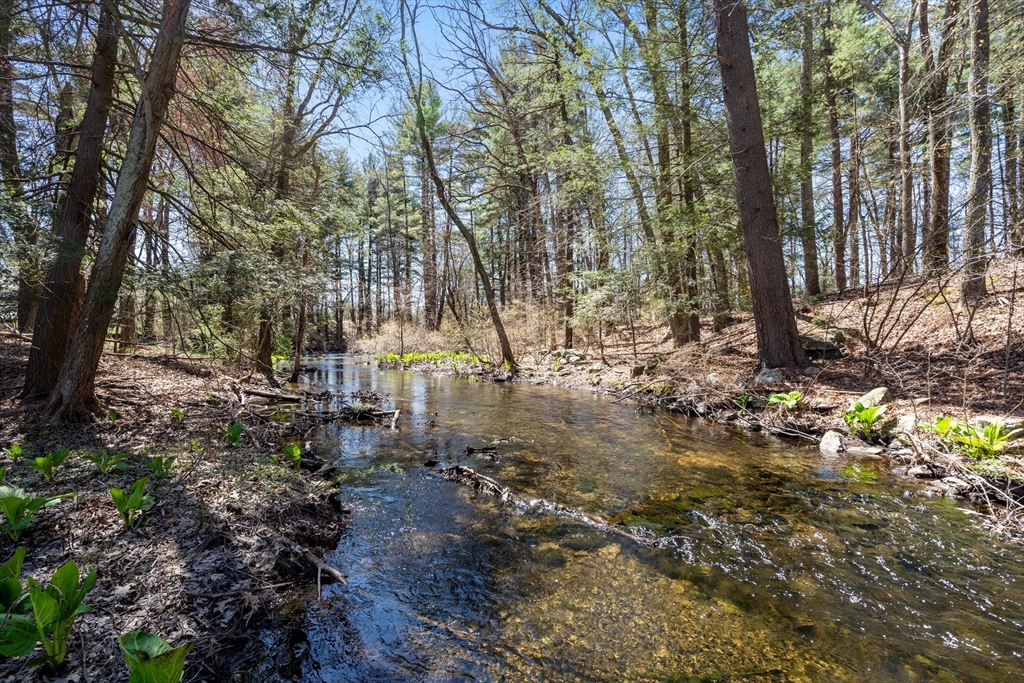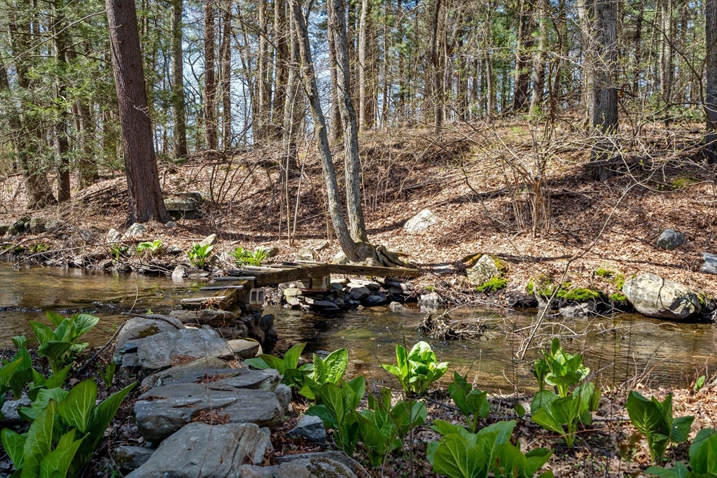 Nestled in a tranquil, sought-after neighborhood, this captivating split-entry home presents a perfect blend of modern living and serene retreat. Step inside and be greeted by the warm ambiance of the living room, enhanced by a fireplace and elegant cherry wood floors that extend into the kitchen. The kitchen itself is a modern delight, equipped with a island, granite countertops, and recessed lighting with a slider that opens to an inviting outdoor deck. The open-concept dining area amplifies the home's welcoming feel, making it perfect for gatherings large or small. Three well-proportioned bedrooms, with the primary bedroom featuring a private half bath for added convenience. Downstairs, the family room offers a second fireplace. Step outside to your personal oasis where a quaint bridge over a stream leads to hiking trails through adjacent conservation land, and a patio with a firepit provides the perfect setting for evenings. Complete with a one-car garage!