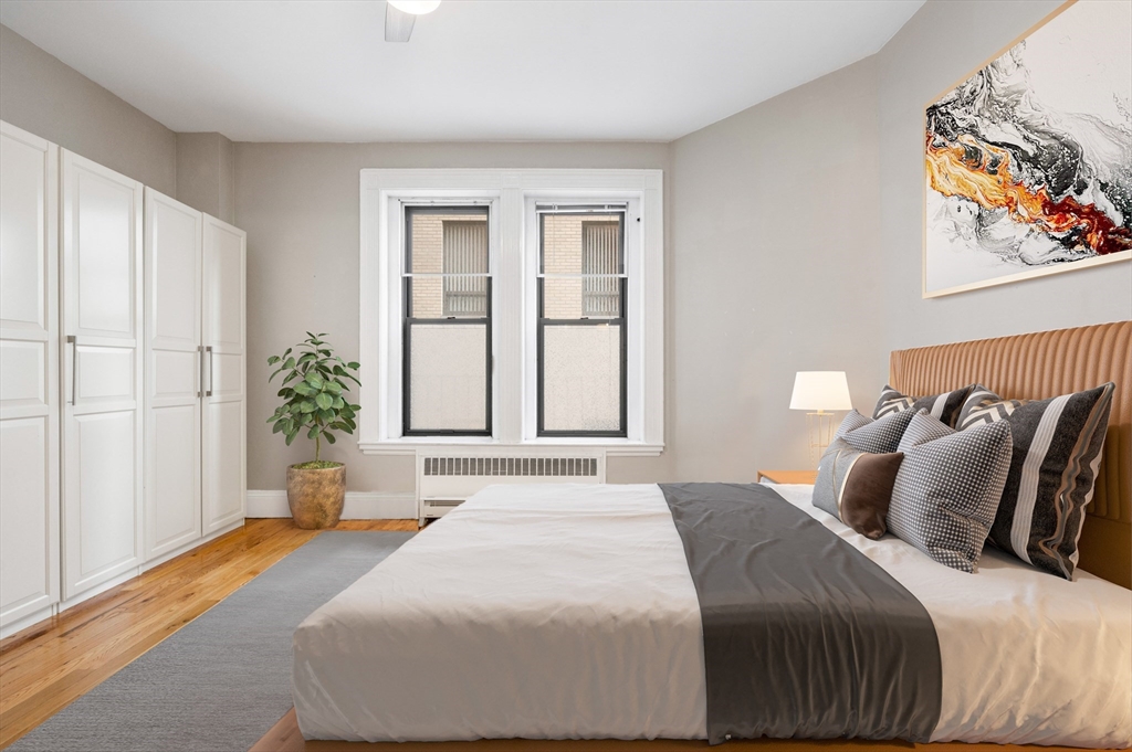 Welcome to The Copley Condominium, located in Boston's historic Back Bay neighborhood, is a prestigious residential building with a rich history. Situated at 271 Dartmouth Street, it offers a blend of classic architectural charm and modern amenities. This stunning and spacious 1-bedroom unit is located on the 2nd floor features hardwood floors throughout, high ceilings with large bay windows overlooking the historic Boston Public Library, filling the space with natural light. The oversized bedroom is accompanied with large closets. Enjoy the convenience of an elevator and professional management. The building is known for its common roof deck, offering spectacular views of Newbury Street, Boston Common, and the iconic Boston skyline. Located in one of Boston's most sought-after neighborhoods, this apartment provides easy access to a variety of shops, restaurants, and cultural landmarks, offering vibrant city life with the comfort of a beautifully maintained home.