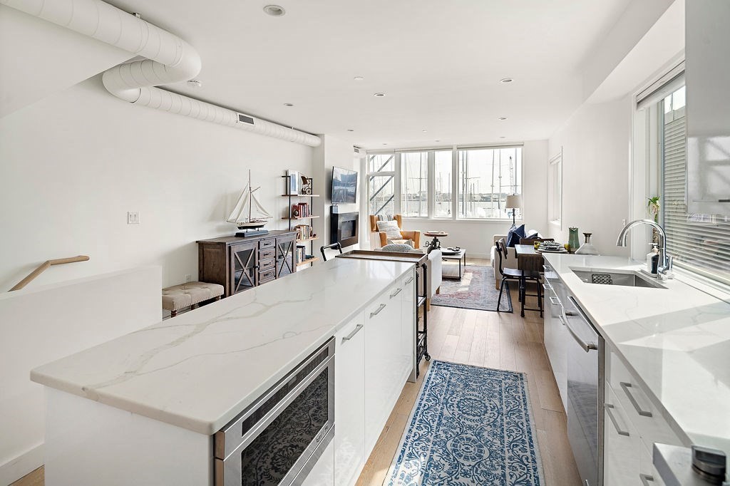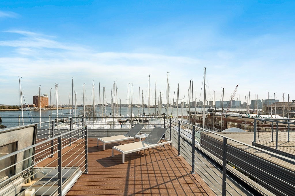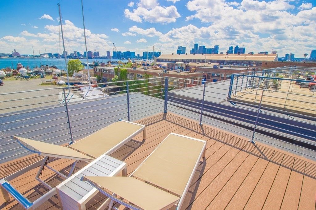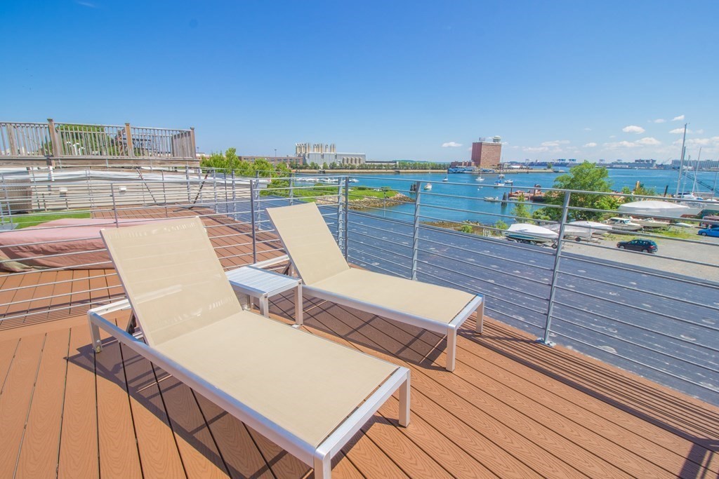 Rarely available waterfront penthouse unit located in coveted East Boston's Jeffries Point. Boasting more than 1,000 SF of living space, this 2 bed/1 bath unit was part of a ground up new construction in 2017 designed by award-winning Merge Architects. The chef's kitchen features custom high gloss white cabinetry, a full Jenn-Air stainless steel appliance package with microwave drawer, gorgeous Calacatta Novus Quartz countertops and large center island. Additional features include hardwood floors throughout, over-sized picture windows, central HVAC, in-unit laundry as well as an amazing 425 SF roof deck featuring durable Trex decking with panoramic views of the Boston Harbor. This unit includes 1 assisgned off-street parking space as well as deeded storage. Steps to all that the East Boston Waterfront has to offer, including East Boston Harbrowalk, SeaBiscuit, Crossfit, ICA Watershed, Downeast Cider House, The Tall Ship Restaurant, Piers Park, Inner Harbor Ferry, and Maverick Sq T-stop