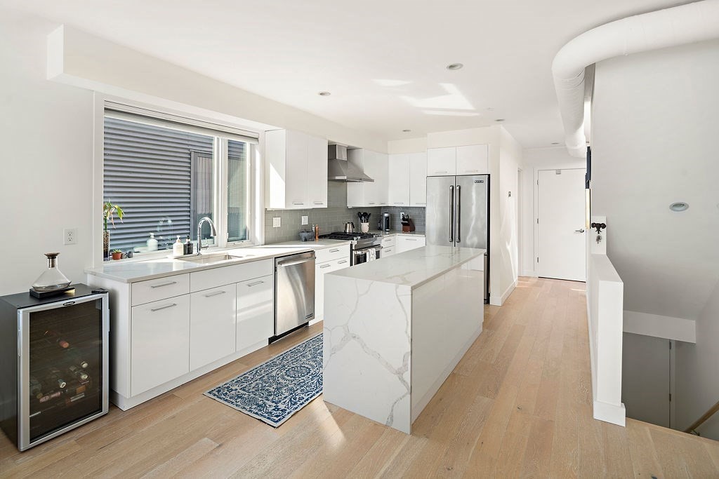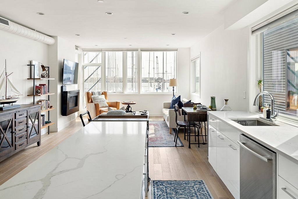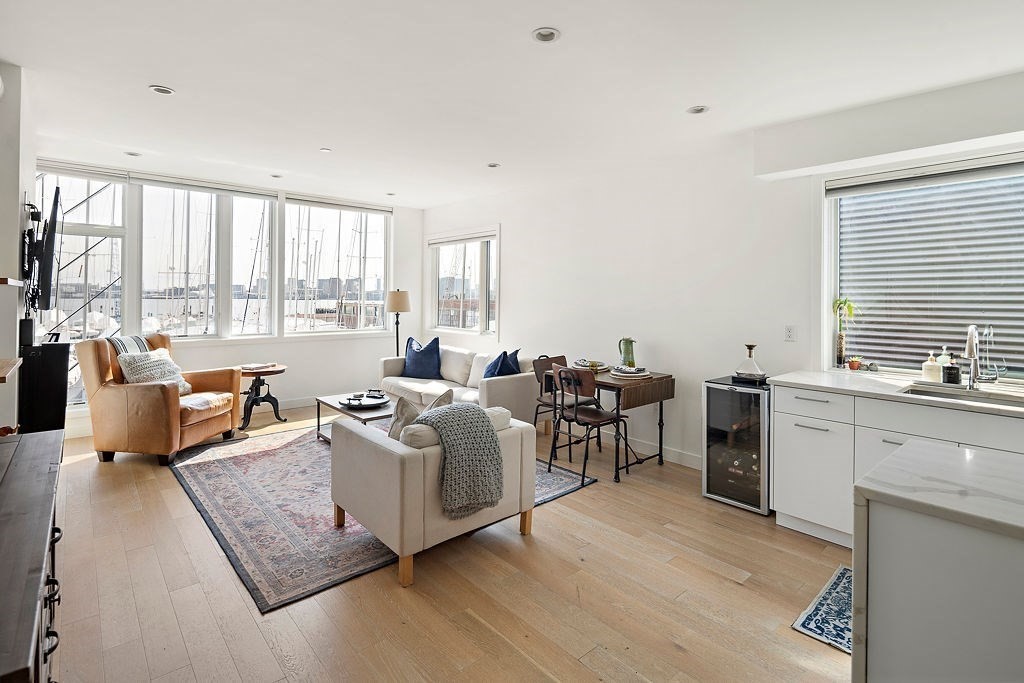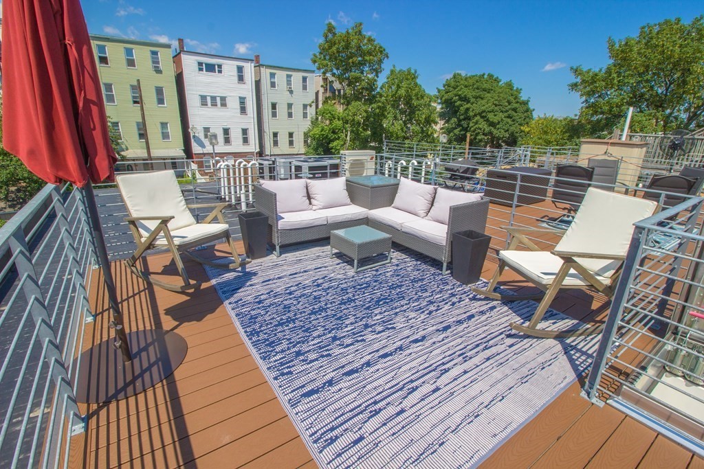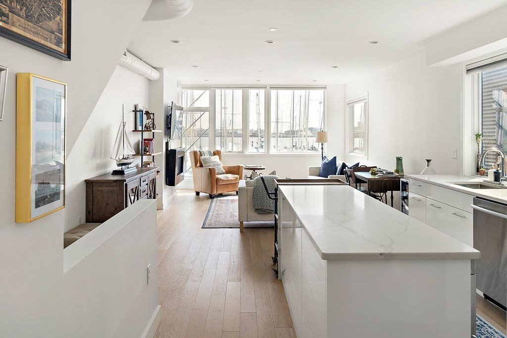 Rarely available waterfront penthouse unit located in coveted East Boston's Jeffries Point. Boasting more than 1,000 SF of living space, this 2 bed/1 bath unit was part of a ground up new construction in 2017 designed by award-winning Merge Architects. The chef's kitchen features custom high gloss white cabinetry, a full Jenn-Air stainless steel appliance package with microwave drawer, gorgeous Calacatta Novus Quartz countertops and large center island. Additional features include hardwood floors throughout, over-sized picture windows, central HVAC, in-unit laundry as well as an amazing 425 SF roof deck featuring durable Trex decking with panoramic views of the Boston Harbor. This unit includes 1 assisgned off-street parking space as well as deeded storage. Steps to all that the East Boston Waterfront has to offer, including East Boston Harbrowalk, SeaBiscuit, Crossfit, ICA Watershed, Downeast Cider House, The Tall Ship Restaurant, Piers Park, Inner Harbor Ferry, and Maverick Sq T-stop