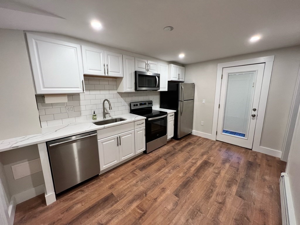 Here is a fantastic opportunity to live in a tastefully renovated one bedroom apartment with useful office nook located in the heart of Jeffries Point! The bedroom features an ample sized closet and can accommodate a queen size bed. The modern kitchen is outfitted with new stainless steel appliances, sleek subway tile backsplash and sparkling white quartz countertop. The elegantly remodeled bathroom has a contemporary vanity cabinet, tile flooring, and a custom glass shower surround. Recessed lighting, new flooring throughout, a private rear porch, an individual storage space and common laundry complement this charming abode! Utilities are separate. Small pets are welcome with Landlord's approval. 367 Sumner Street is perfectly located within .3 miles from the Maverick Sq. "T," two blocks from Piers Park, the Boston Harbor Shipyard and Marina. Easy access to Logan Airport, major highways and many local shops and restaurants makes this home the one you've been waiting for!