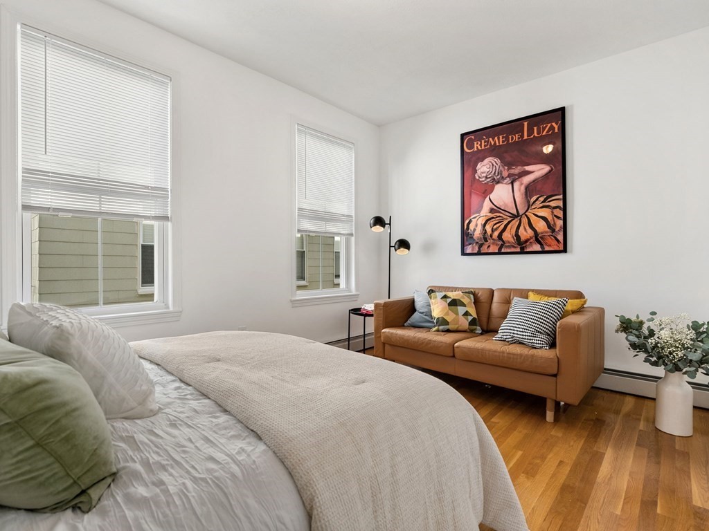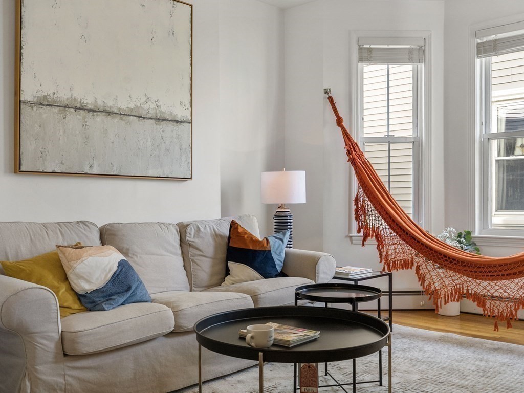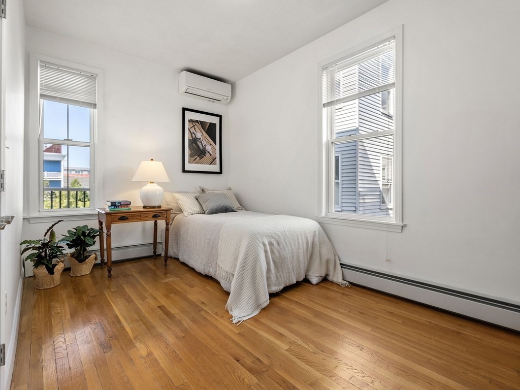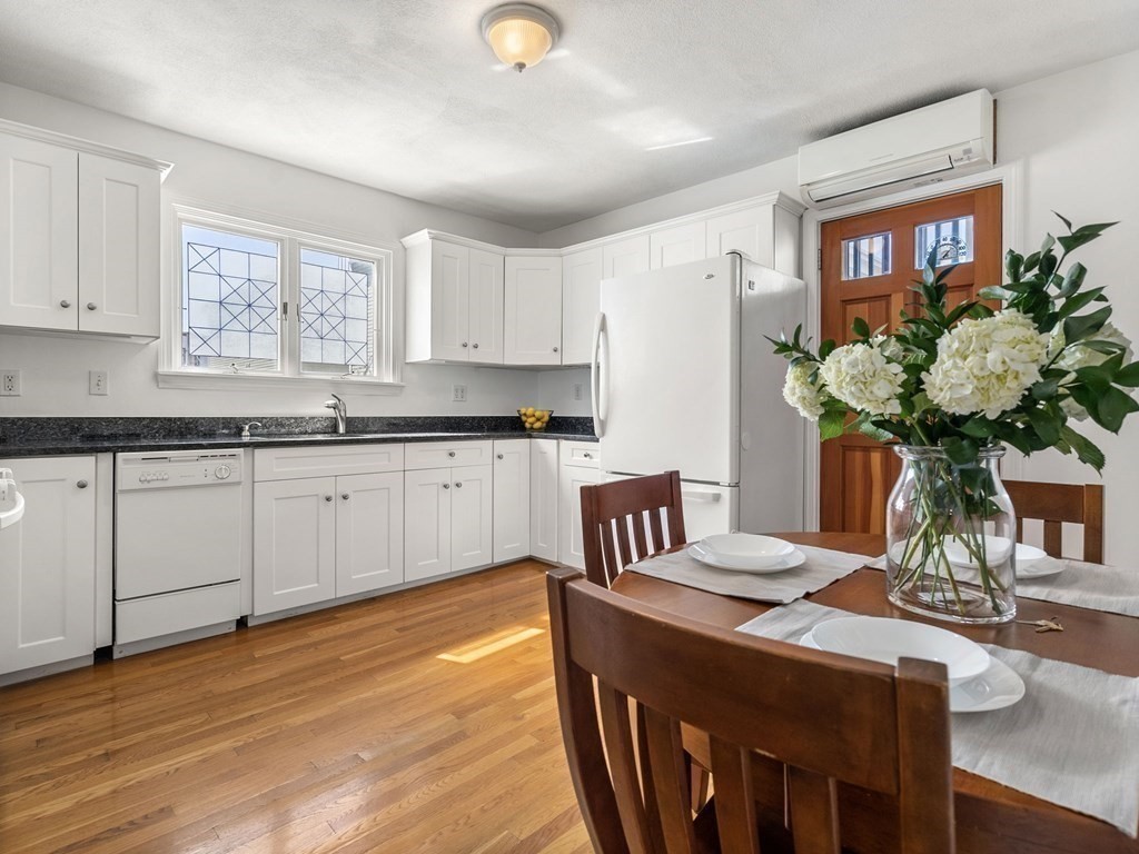 Welcome to this sun-filled, high-ceiling, meticulously maintained, freshly painted home in one of Cambridge's most desirable neighborhoods. Minutes'walk from Kendall and Inman Squares, cinema, shops, restaurants, healthcare, MIT, Harvard, Red & Green T stations. With a functional, flowing floor plan, it has an airy, elegant living-room with bay windows, perfect for entertaining or a quiet evening. A large impeccably kept white eat-in kitchen that easily fits a large dining table, with granite counters, gas range, dishwasher hook-up, and plenty of storage space.Two spacious bedrooms can comfortably fit queen/king size bed. Ceramic tile, granite counters, and glass tub//shower door in the bathroom.You also get a small OFFICE/DEN, a lovely BACK PORCH, exclusive secure extra-STORAGE and LAUNDRY room downstairs, and a GARAGE w/ door opener, a rare asset in Cambridge! High-efficiency ductless A/C. Professionally managed, LOW CONDO fee. Unique opportunity not to be missed!