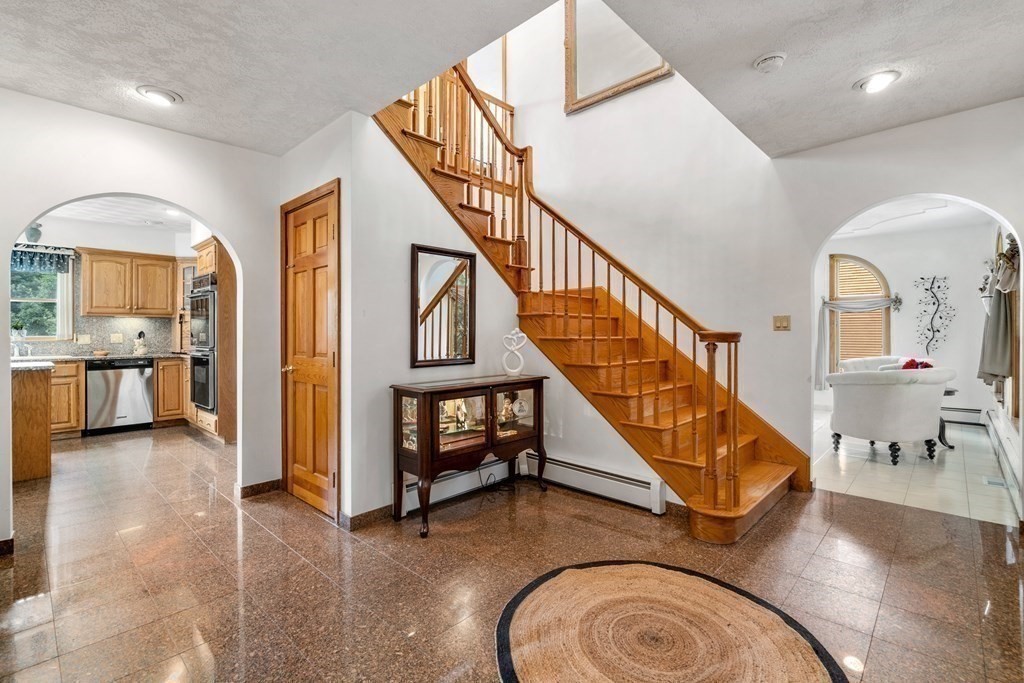 Incredible accessibility yet tucked down a serene tree-lined street is this commanding Colonial-style residence. Approached by a circular drive, the beige brick facade with recently refinished hip roof makes the level of elegance found within immediately evident. The interior is comprised of four bedrooms and three full and one-half baths across 4,167 square feet of living space. Five zones of climate control inside allow for constant comfort. Heated garage. The half-acre lot is level with a terrace all flanked by mature woodland. A stone's throw to desirable commuting routes into Boston, dining, retail, parks, trails, and Crystal Lake.