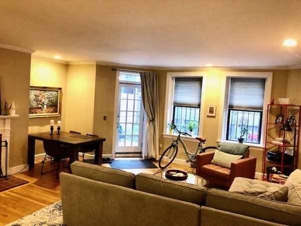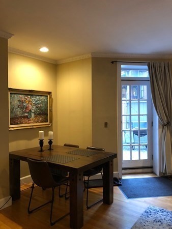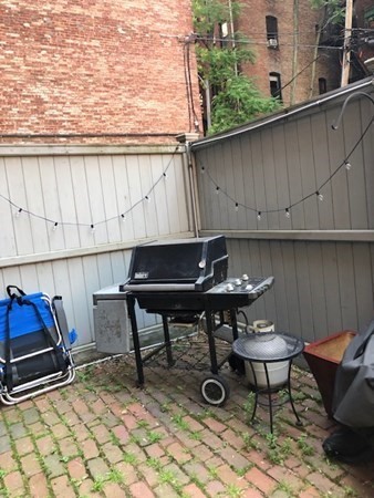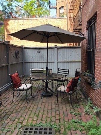 Beautiful Back Bay apartment with PARKING and large private enclosed furnished brick patio, including gas grill. Spacious bedroom with en suite marble bath with tub and 2 closets. Expansive living room with fireplace, hardwood floors, and plenty of room for dining and home office, walk-in storage closet in entryway. Renovated wide galley kitchen with granite counters, double ovens, microwave, dishwasher and new stainless steel fridge. Central air and onsite laundry complete this wonderful city home. Close to world-class shopping, some of the city's best restaurants, nightlife, parks, the Charles River Esplanade and Fenway Park. Easy highway access. Photos are from previous tenancy.
