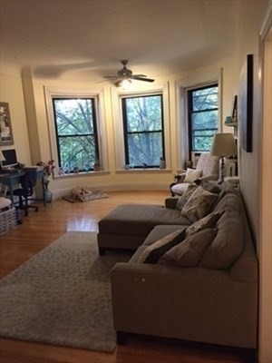 Live in this beautifully renovated, bright, and sunny 600-square-foot, pet-friendly 1-bedroom apartment on the 3rd floor of Commonwealth Ave. Enjoy an incredible common roof deck with stunning views of the city and Charles River, perfect for relaxing or entertaining. This unit offers 1 off-street parking spot (Extra $300) and features sunny bay windows in the living room, offering a perfect view of the Boston Marathon. The rent includes heat and hot water. Inside, you'll find hardwood floors throughout, granite counters, stainless steel appliances including a new dishwasher, and a decorative fireplace. Don't miss out on this inviting and well-appointed apartment!