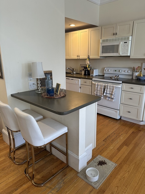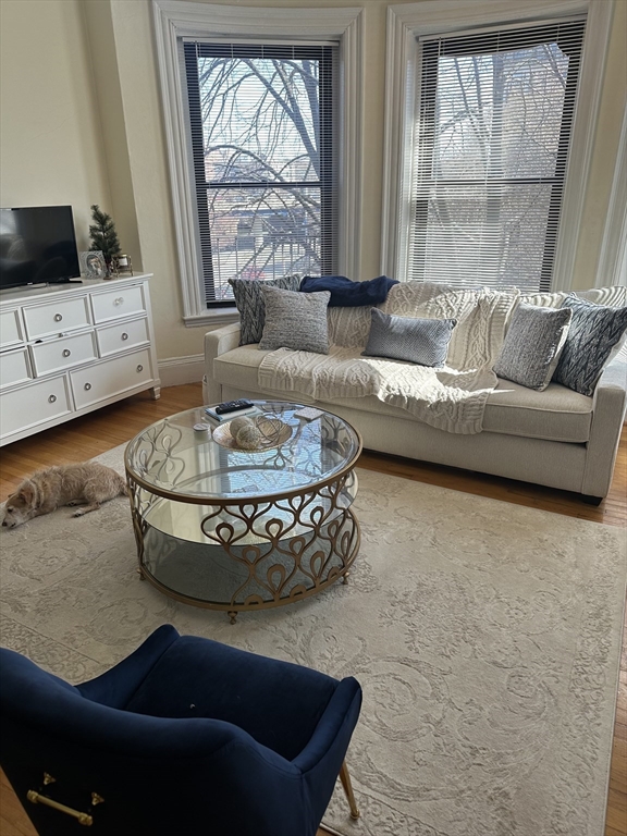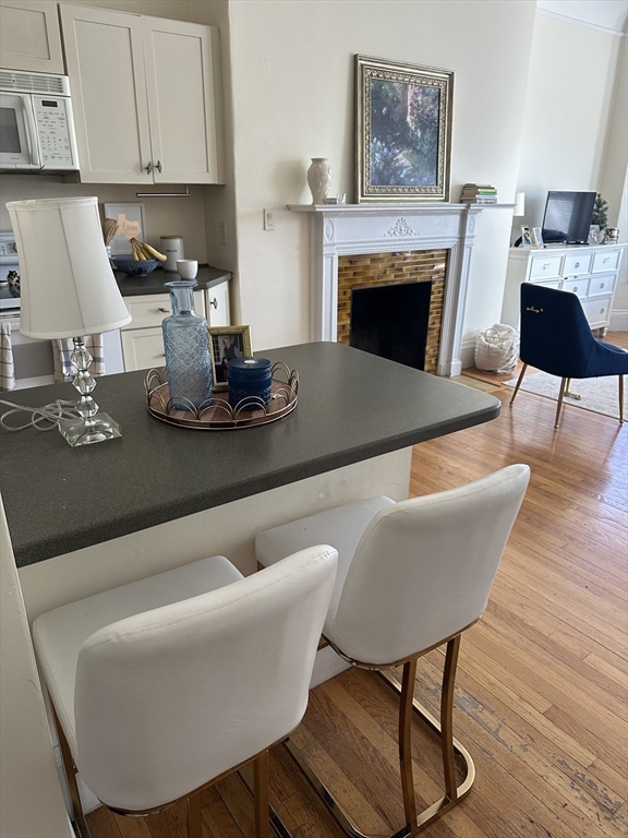 Live in this beautifully renovated, bright, and sunny 600-square-foot, pet-friendly 1-bedroom apartment on the 3rd floor of Commonwealth Ave. Enjoy an incredible common roof deck with stunning views of the city and Charles River, perfect for relaxing or entertaining. This unit offers 1 off-street parking spot (Extra $300) and features sunny bay windows in the living room, offering a perfect view of the Boston Marathon. The rent includes heat and hot water. Inside, you'll find hardwood floors throughout, granite counters, stainless steel appliances including a new dishwasher, and a decorative fireplace. Don't miss out on this inviting and well-appointed apartment!