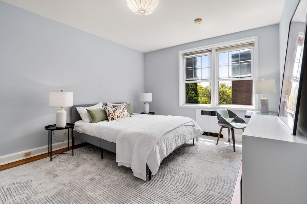 Rare move-in ready 1 bedroom corner unit, facing the Cambridge Common and Follen St, with abundant light in the heart of Harvard Square! Welcome to this sun-filled home in one of Cambridge's loveliest & most desirable neighborhoods. Glowing hardwood, this home has the craftsmanship of another time with stylish and modern features. Enter a spacious hallway where you can have a desk or create storage shelves. Elegant living room has enough space for the dining table and has plenty of sitting area. Bedroom can perfectly fit queen or king size bed and still has enough space for an extra desk and drawers. The unit has been repainted and floors have been refurbished. Elevator building with on-site superintendent and management. Steps from Cambridge Commons, Harvard Law School, Harvard Yard and walking distance to Red Line. A perfect opportunity for a graduate student, investor or a first time homebuyer. Only cats are allowed
