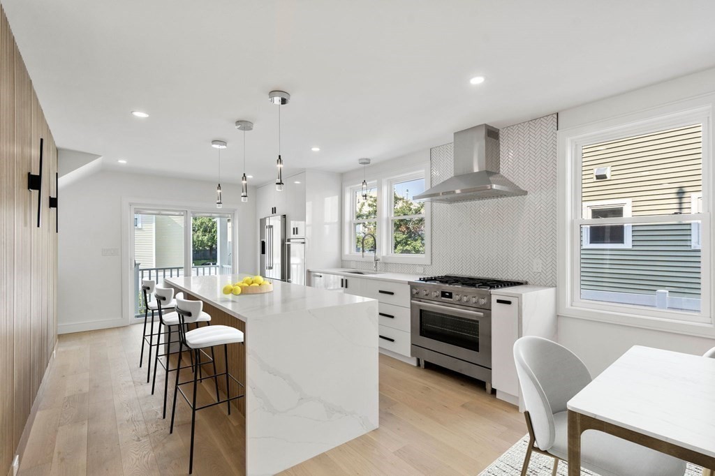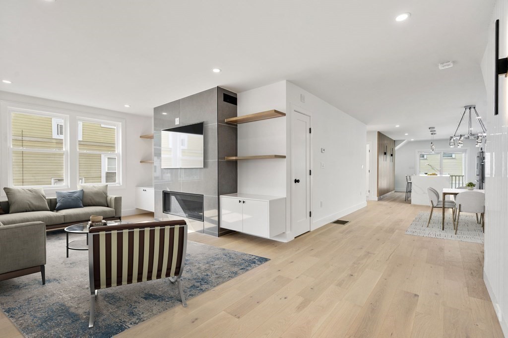 EASY TO SHOW! EXCEPTIONAL QUALITY AND ATTENTION TO DETAIL THROUGHOUT!! 2352 sq. ft. 8 Rooms, 4 bedrooms, 3 full baths. Gorgeous gut-renovation inside and out boasting exceptional living in the exclusive Ten Hills Area. Main level consists of living room with gas fireplace, dining room, kitchen area that boasts an island with seating for 4, Bosch stainless steel appliances, quartz countertops, and slider to your own private deck where you can enjoy your morning coffee. Two bedrooms and a full bath complete the first floor. Lower level includes the primary suite with a full bath and walk-in closet, second bedroom, full bath, laundry room. A bonus room that can be used for either a den or office. Oversized windows provides an abundance of natural light. Engineered floors throughout, overhead lighting, off-street parking for one car, outdoor private patio space. Access to rt 93, Assembly Row, Orange Line, Winter Hill Brewery. Kayak and boating at nearby Mystic River