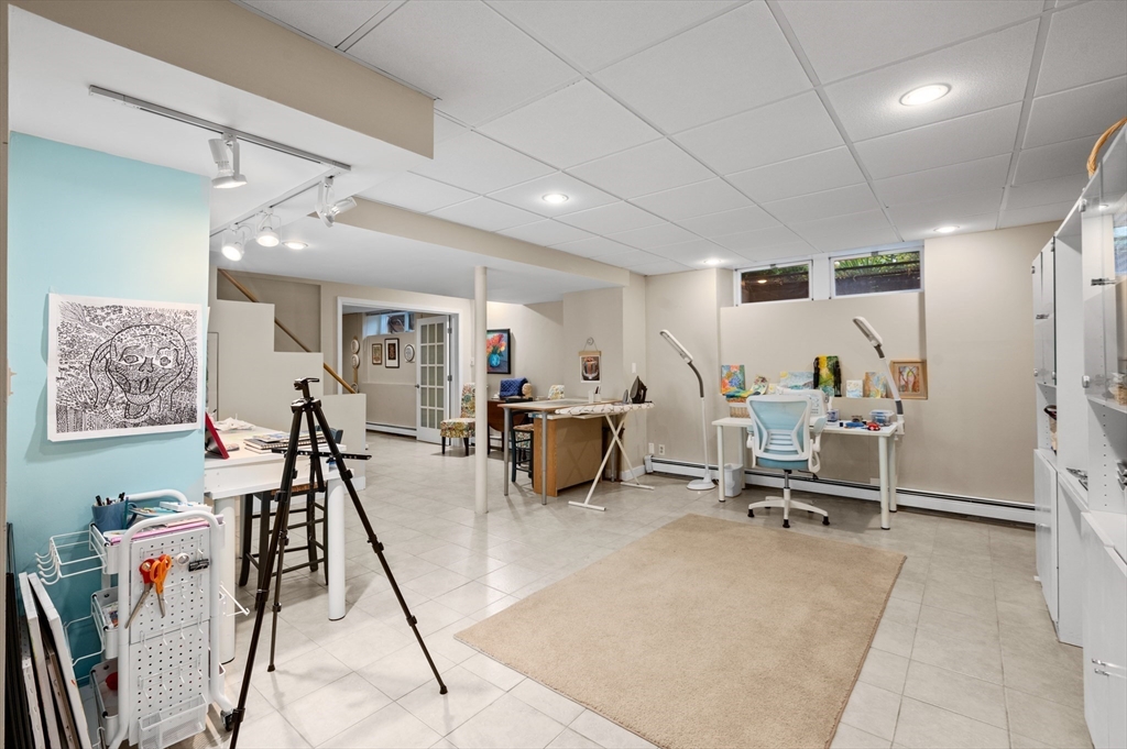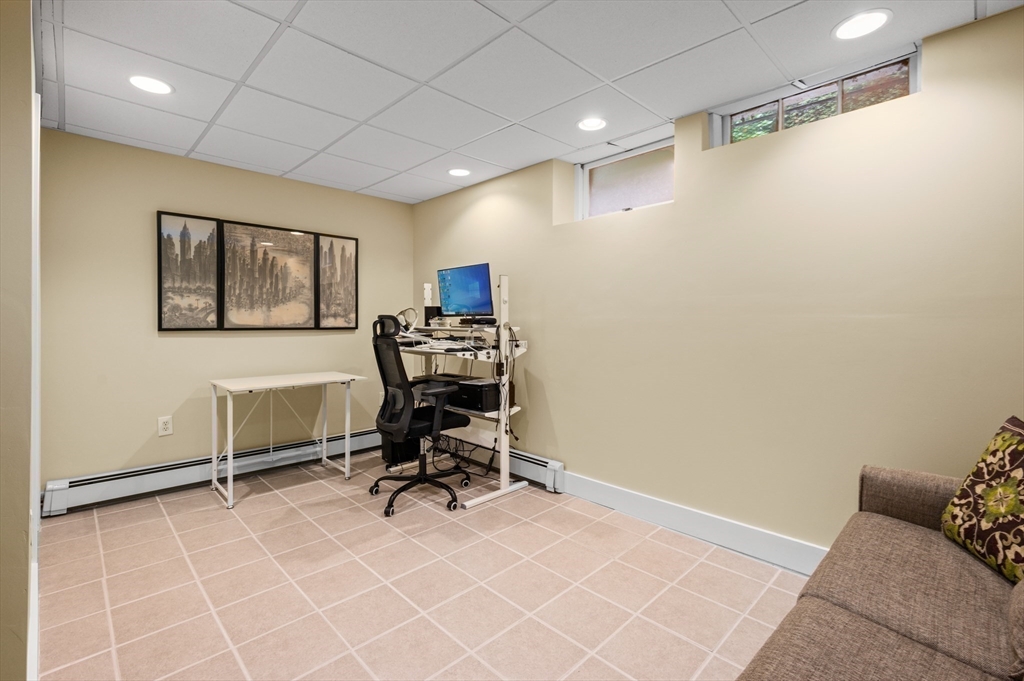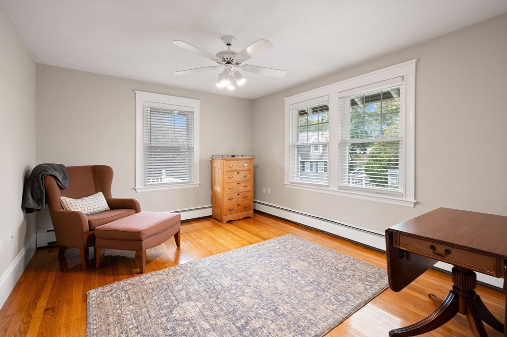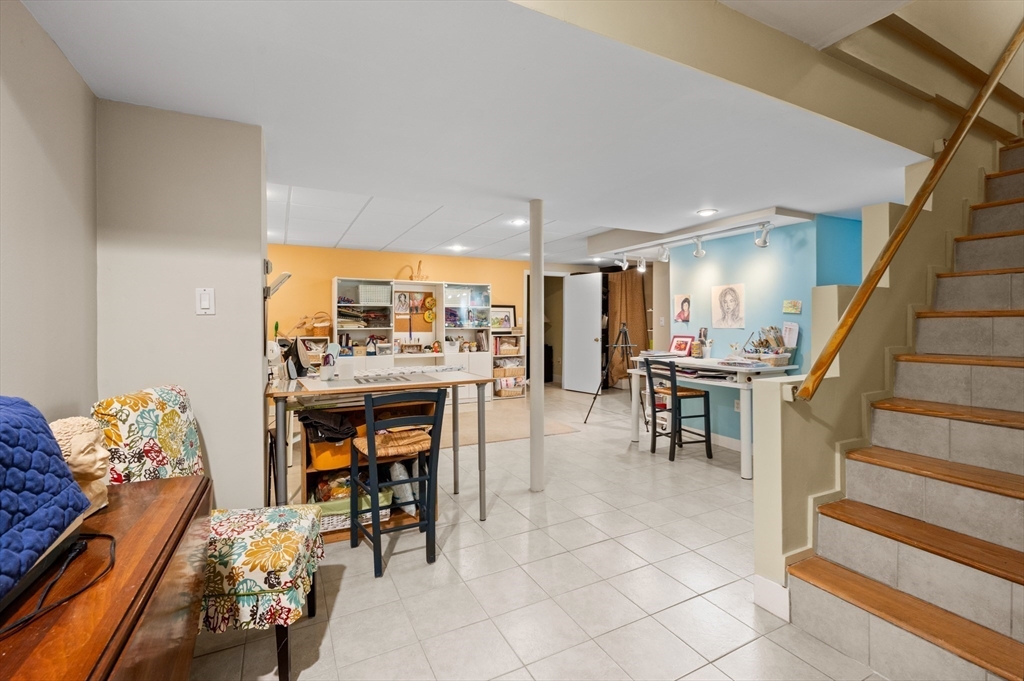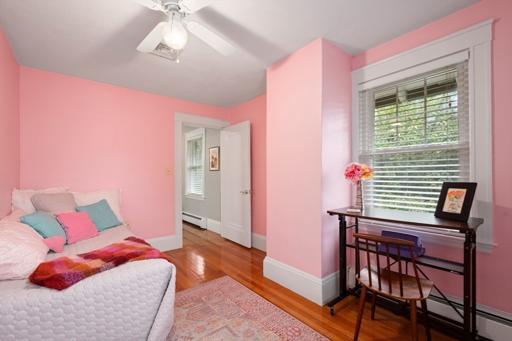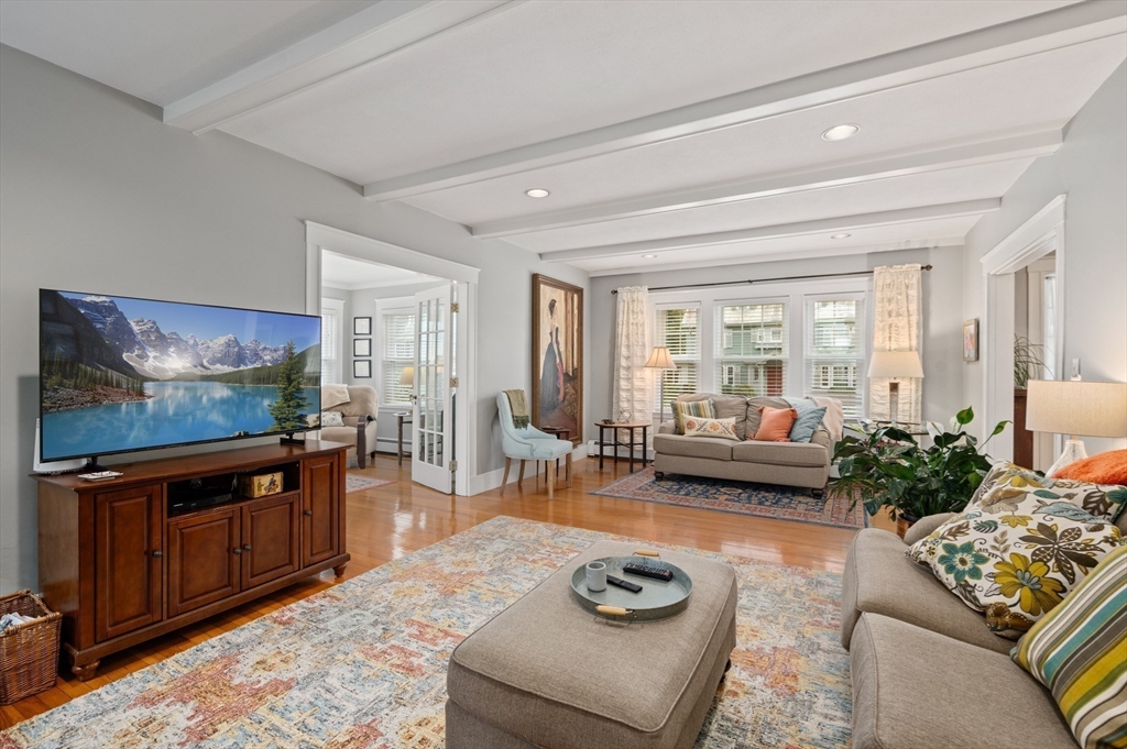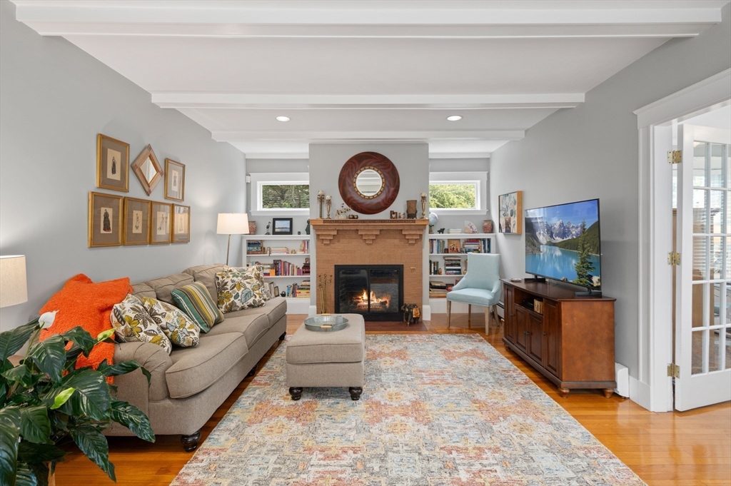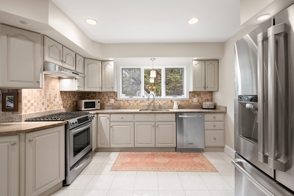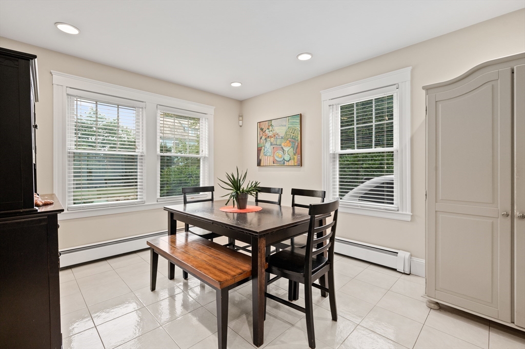 The Heart of Lawrence Estates. Pristine center entrance 12 room 4+ bedrooms solid brick colonial. 100 year slate roof. Seldom seen today. Interior designer owned. Enter sparkling foyer, turn right into formal living room w beam ceiling and fireplace. Flow to glass year round sunroom/home office. Left of foyer enter formal dining room, detail mouldings, high baseboards and chair rail. Kitchen is state of the art, high end appliances, gas stove, granite countertops, soft mushroom cabinetry and ceramic flooring. Adjacent 1/2 bath. Special feature is a separate breakfast room, walk out to a 1 car garage and fenced rear yard designed by the designer of Rose F. Kennedy Greenway. 2nd floor w 3 full bedrooms, en-suite primary bedroom, full bath, steam generator. Two ample bedrooms and an additional full bathroom. Hardwood floors throughout and central a/c. Bonus 1,074 sqft walkout bulkhead lower level ideal for au-pair, craft room, gym, secondary office and bedroom. Steps to Medford Square.