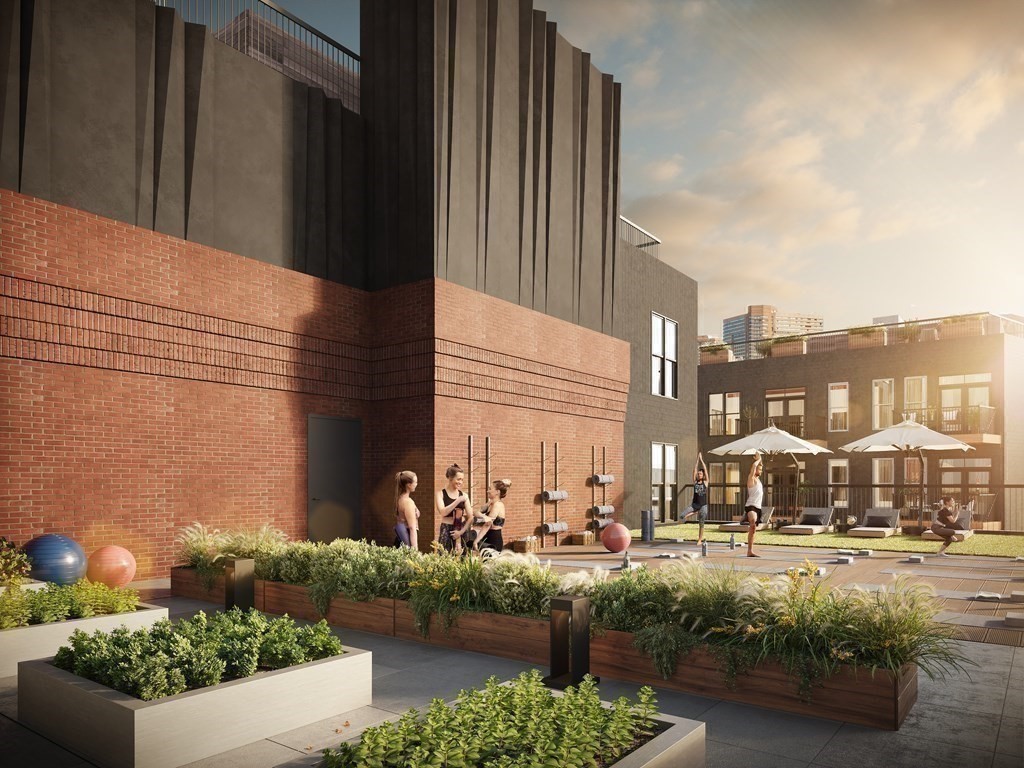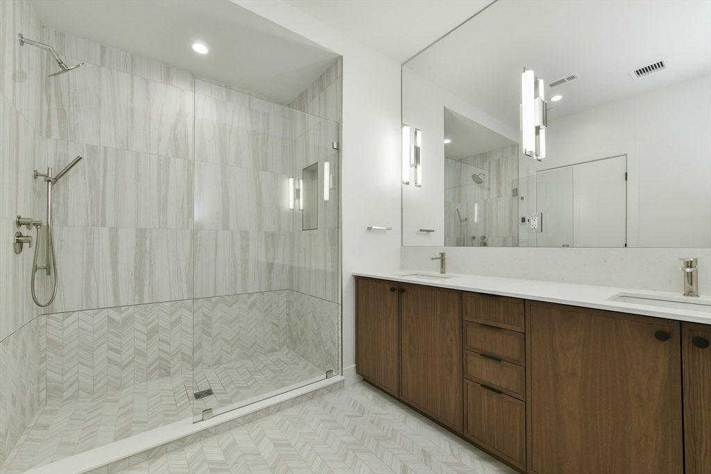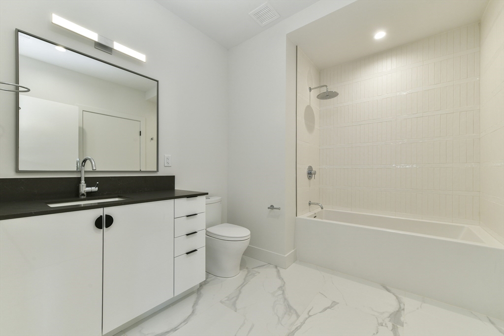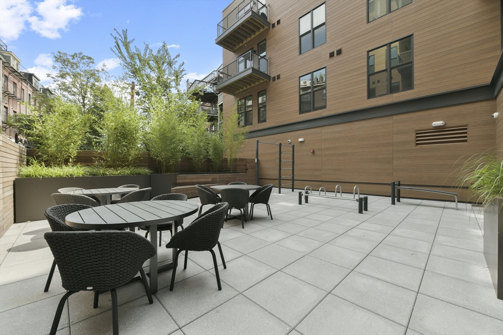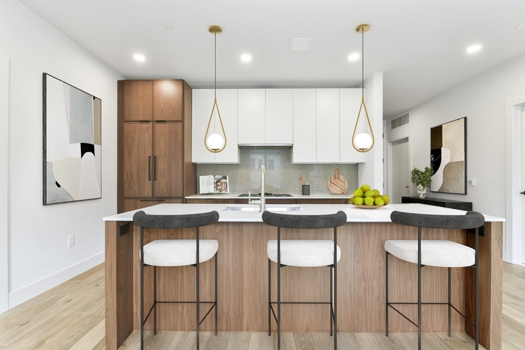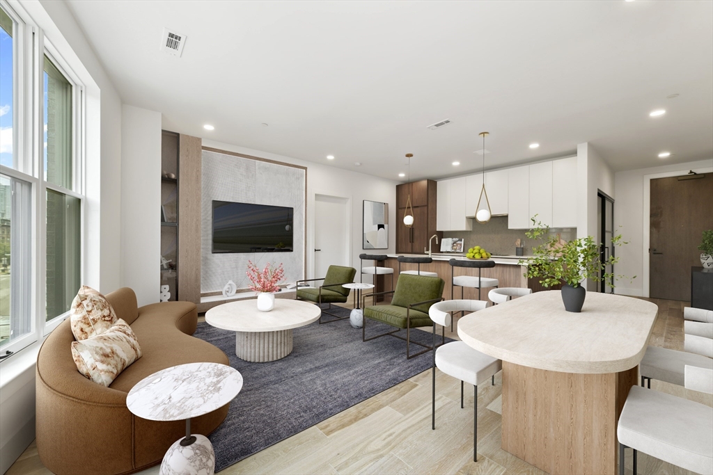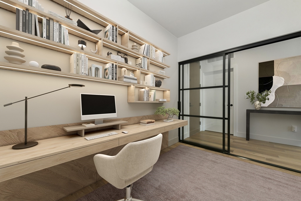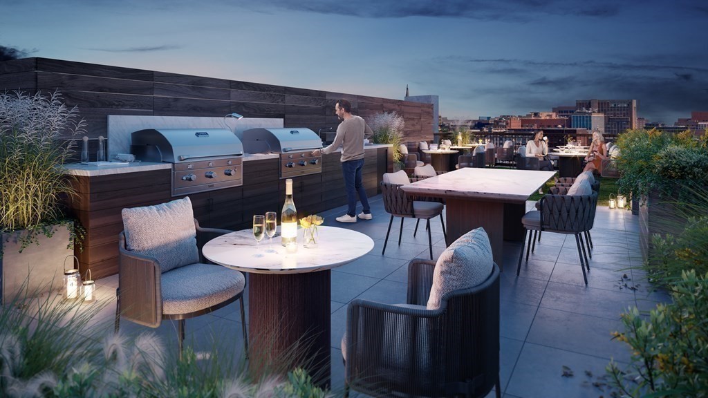 The Residences at 566 is a newly constructed building in the vibrant South End, steps to the city's renowned restaurants, galleries, and markets. This city facing home offers 1252sq.ft. in a coveted split 2-bedroom 2-bathroom layout with spacious den and Juliet balcony. The custom two-tone kitchen features a large quartz island and integrated top tier appliances. Walk-through wardrobes, spa-like bathrooms, radiant heated floors in primary bathroom. Enjoy panoramic skyline views of the entire city from the rooftop lounge outfitted with a firepit, outdoor kitchen, and dining and lounging areas. The building offers a fitness center, outdoor gym area, and rooftop yoga deck. Additional amenities include concierge, pet spa, bike storage, herb garden, and touchless elevators. Private deeded storage locker across the hall and 1 deeded garage parking under the building.