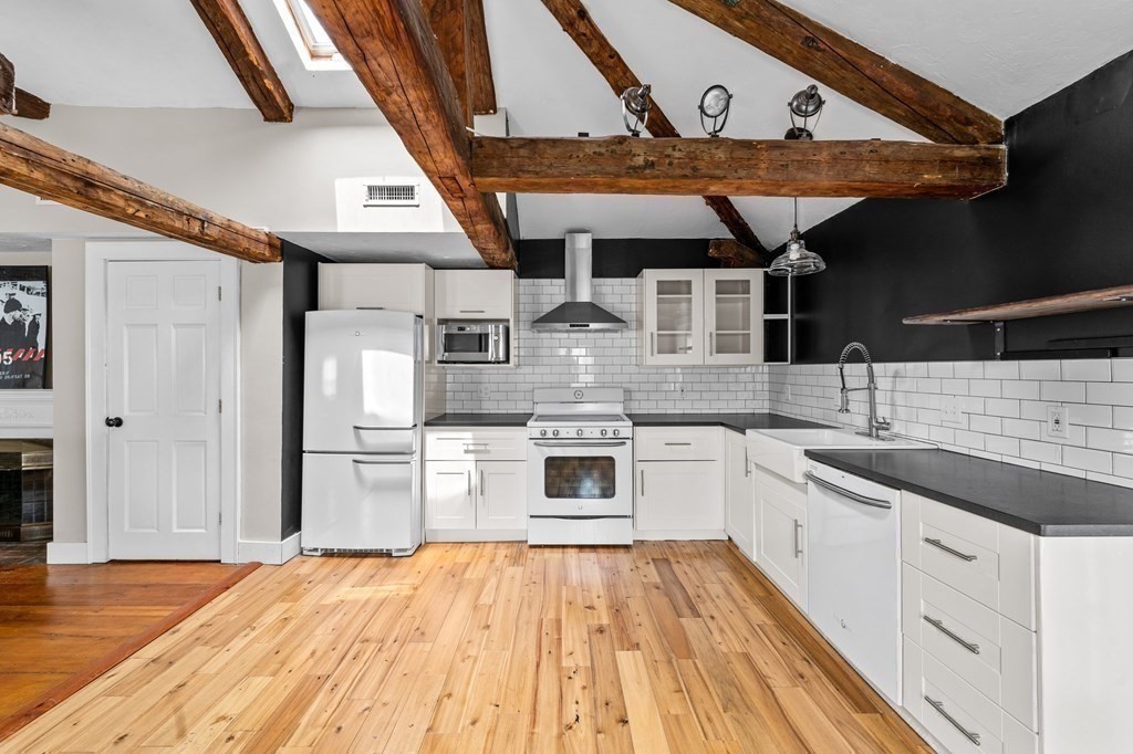 Gorgeous penthouse condo in Salem, MA. This 1 bed, 1 bath gem features stunning lofted ceilings, creating an open and airy ambiance. The renovated kitchen boasts modern finishes, making cooking a joy. Additionally, there's a separate loft area that can be used as an additional bedroom or a cozy home office. The unit comes with deeded parking, in unit washer/dryer ensuring convenience and peace of mind. Lounge in the common yard and walk a few steps to the famous Salem Commons. Located in historic Salem, this penthouse offers the perfect blend of style, functionality, and location. Don't miss this incredible opportunity to own a slice of paradise in one of Massachusetts' most charming cities.