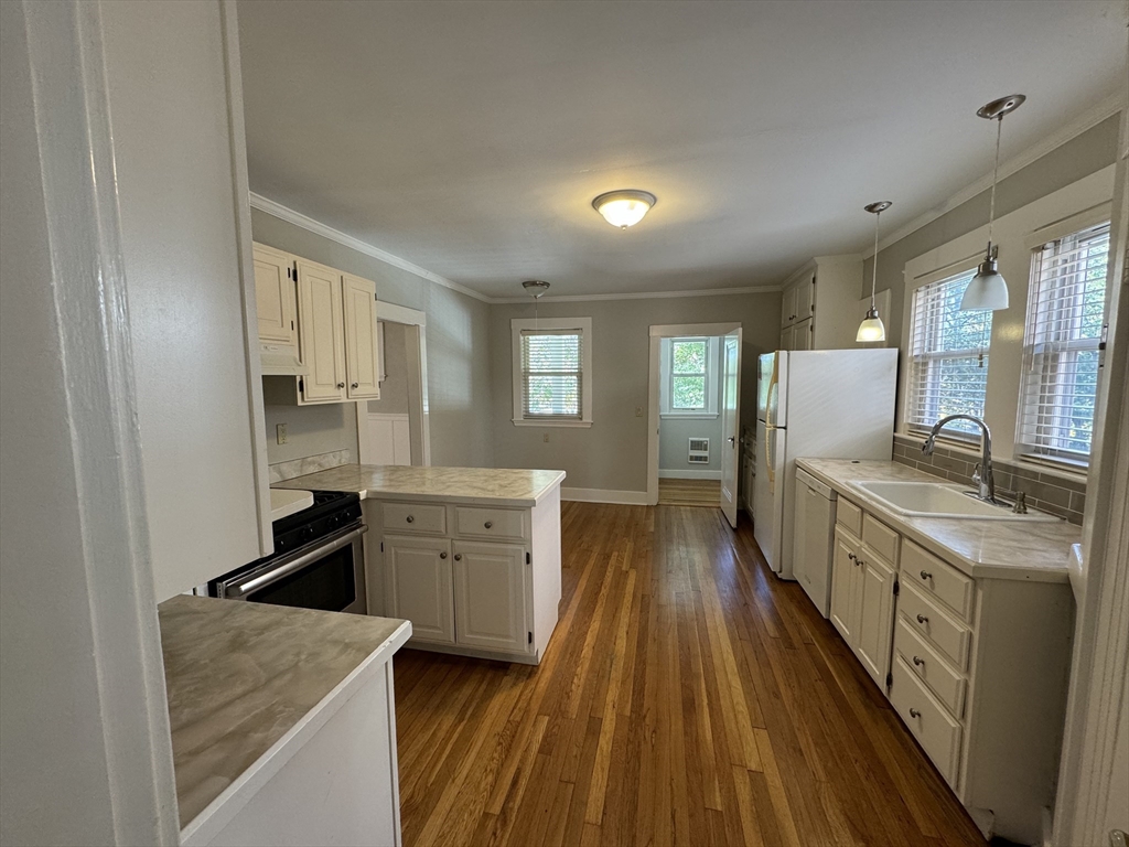 Beautiful, well-maintained home on a tree-lined street in Brighton, near Boston College and the "T" station. Rich in character, this elegant residence features a brick fireplace, triple crown moldings, gumwood wainscoting, and an arched built-in china cabinet with original latches in the formal dining room. Hardwood floors flow throughout, and a bright sunroom off the dining room adds space to relax or entertain.The updated kitchen includes solid wood cabinets, gas cooking, and modern appliances, with direct access to a large composite deck overlooking the private backyard--perfect for summer gatherings. A walk-up third-floor bonus room features a spacious cedar closet. Additional highlights include central air with a heat pump and a finished walk-out basement with two bedrooms and a generous family room.This four-level home offers flexible living space and off-street parking. Flexible summer move-in. Home is professionally managed.No undergrad students!