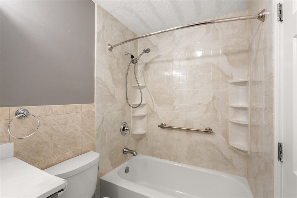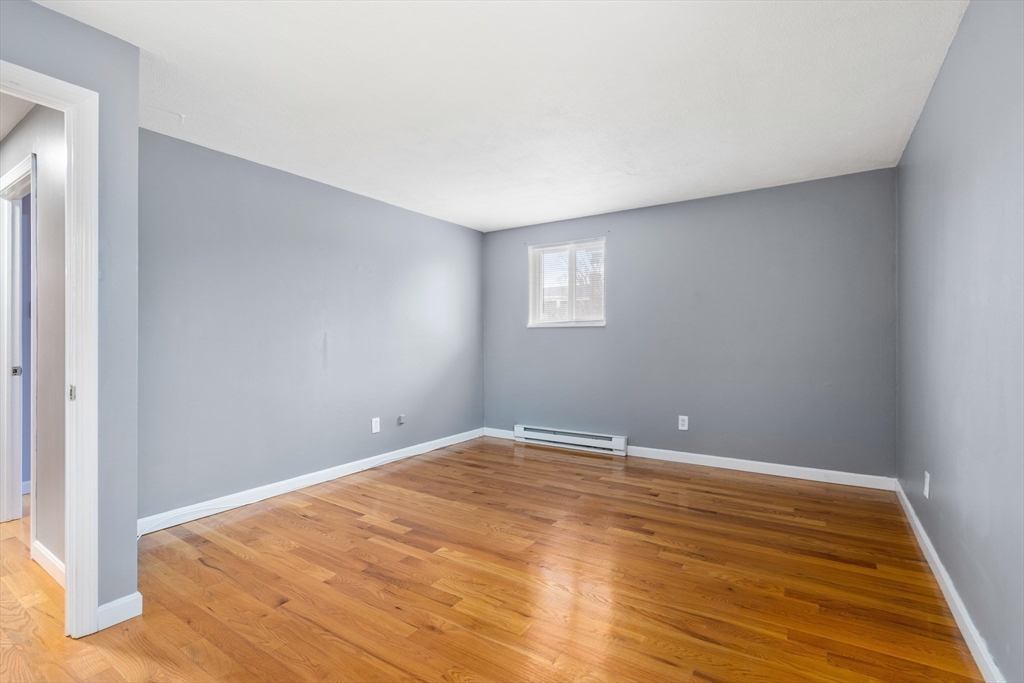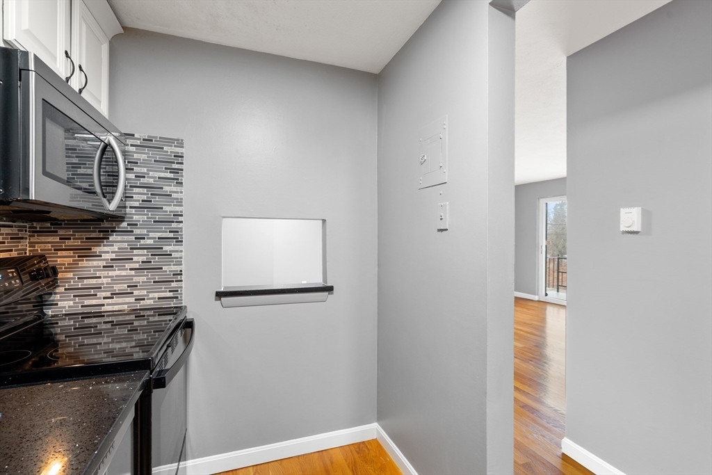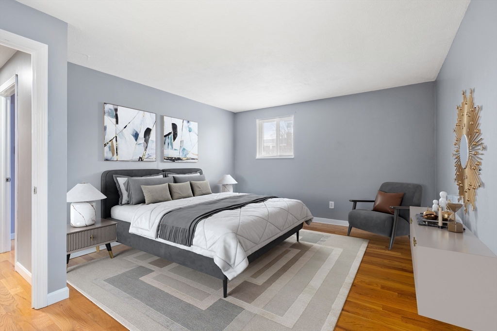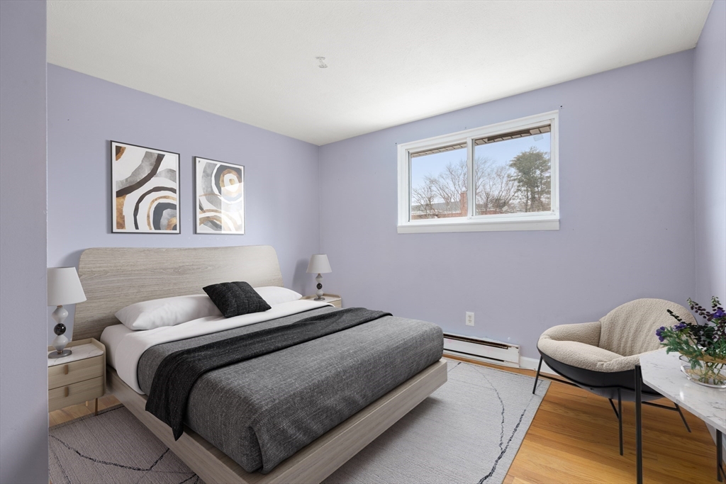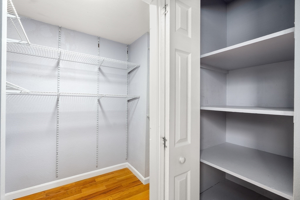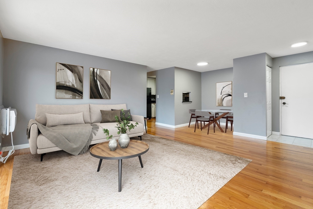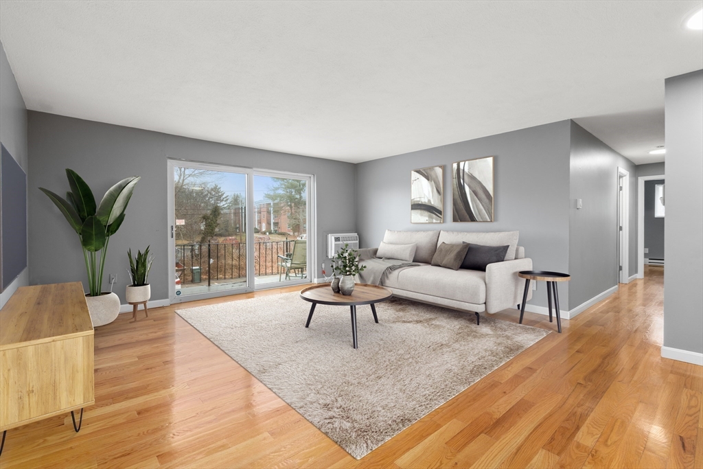 Pristine 2-bedroom, 1-bath corner unit located on the second floor. Hardwood floors flow seamlessly throughout, leading to a recently updated kitchen featuring newer appliances, granite countertops, and a stylish tile backsplash. The spacious living room and dining area create a warm atmosphere, leading to a private balcony with Trex decking through sliding doors. The spare bedroom, with ample natural light, boasts a large closet, while the extra-large primary bedroom features a huge walk-in closet and additional storage. Unit includes extra storage and laundry facilities on the lower level. The complex is complemented by an inground pool. This pet-friendly unit, subject to some restrictions, includes 1 deeded parking spot, and is ideally located just off Route 18, offering proximity to South Shore Hospital, Whole Foods, and the South Weymouth Commuter Rail station.