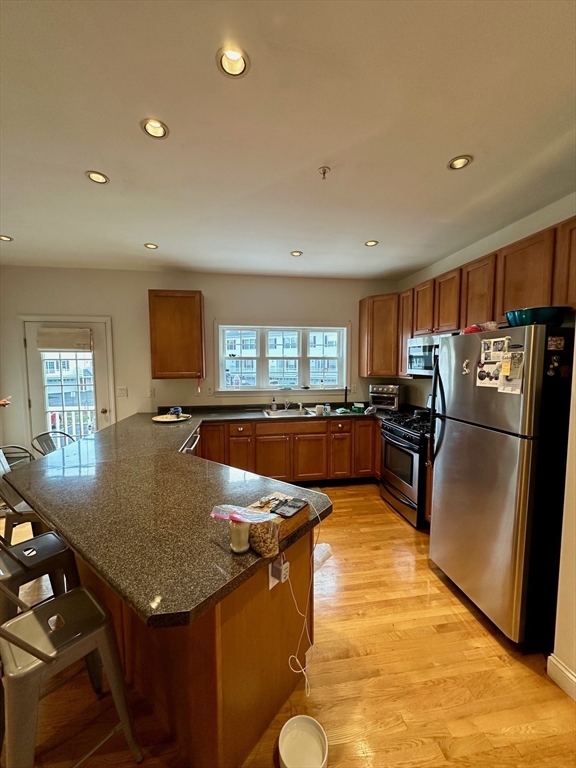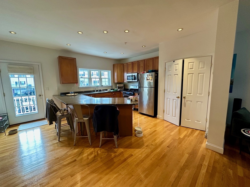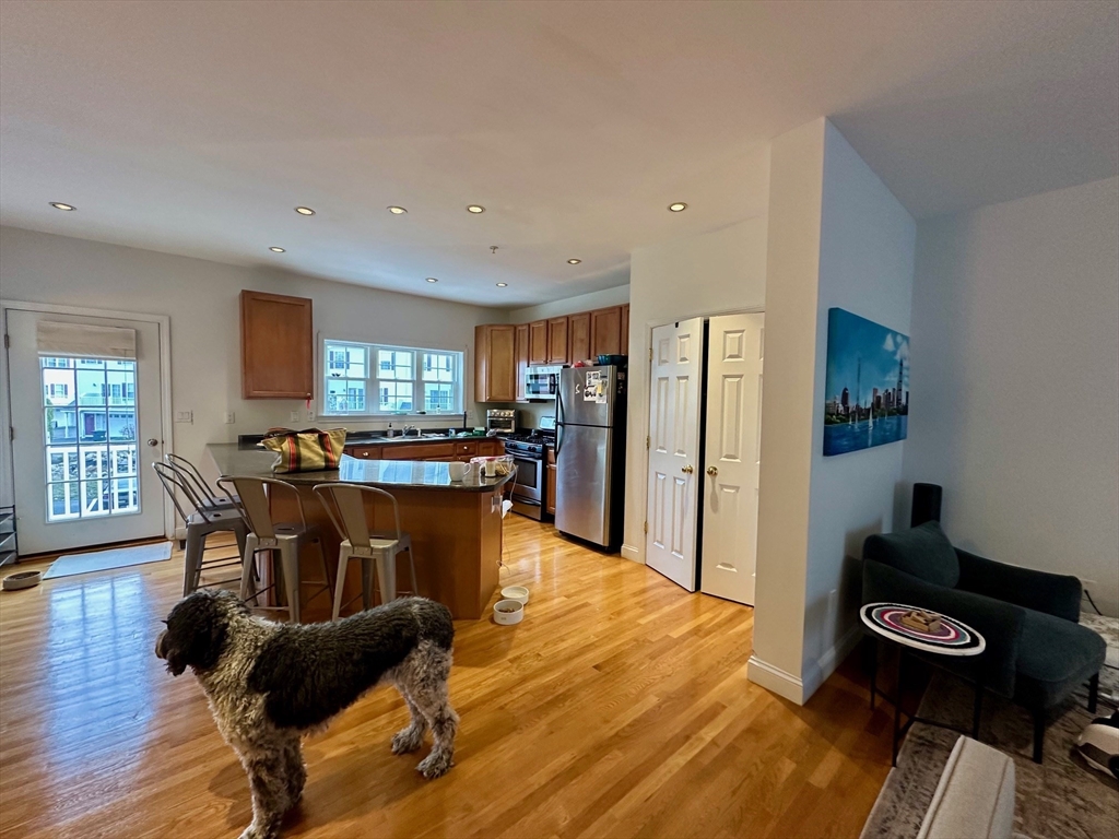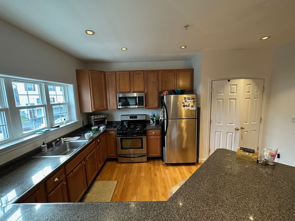 Stunning 3 bedroom/2.5 bathroom townhouse in Medford near Wellington T, Wegmans and Assembly Row! This townhouse spans three floors plus the garage. On the first floor you will find an open layout living area and kitchen, a half bathroom and balcony. Master bedroom, the second bedroom and another bathroom located on the second floor. And finally a large and specious third bedroom is located on the third floor. This unit is exceptionally bright and freshly painted. Hardwood floors and high ceilings throughout. Washer and dryer in unit. AC and heat is controlled through Nest thermostat. Two parking spots are provided in the garage. Additionally it is possible to park two more cars in front of the garage door. Pets negotiable. This is a perfect apartment for families, professionals and downtown commuters! Located near I-93, Wegmans, Stop&Shop, Assembly Row and Mystic River Reservation.